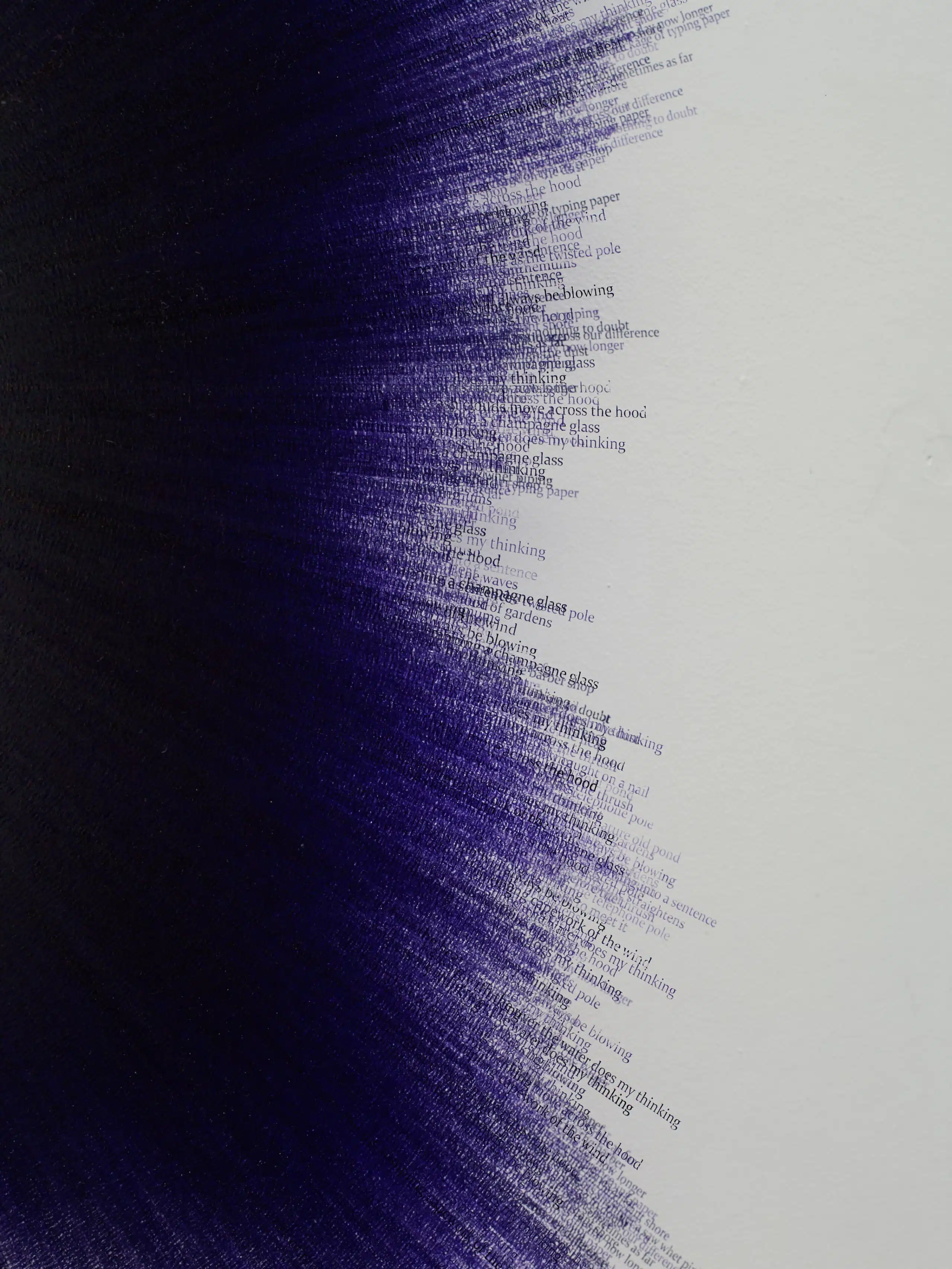 Idris-Khan. Nothing to Believe, Nothing to Doubt, 2018. 3 glass sheets stamped with purple oil based ink aluminium rubber. Courtesy of the artist and Victoria Miro Gallery
