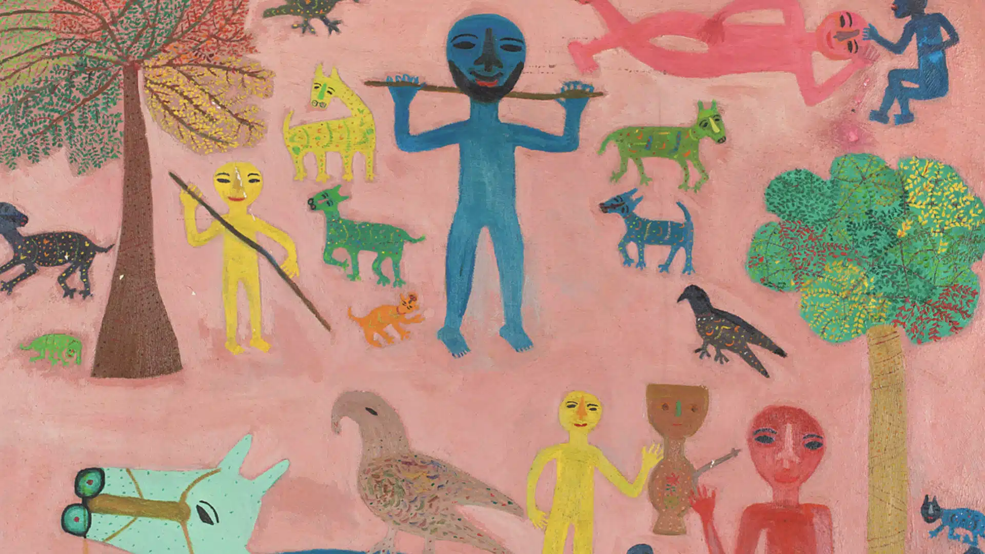 Born in Sanjaya, Gujarat, Madhvi Parekh’s work underscores the rich heritage of folk traditions, such as embroidery and picchwai painting. Parekh’s lushly-coloured and deceptively simple paintings reflect her preoccupation with childhood and the poetics of everyday rural life, also inspired by a range of Western influences, from Paul Klee to Henri Matisse. Her work, however, refuses to reconcile this tension between the vernacular and the modern; instead, the artist’s uses her unique visual vocabulary to raise questions about how to interpret the folkloric in a modern India. Her magical, playful paintings draw from memory, as well as from both Hindu and Christian religious artwork.