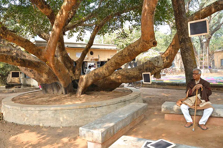 A short rickshaw ride from Bolpur station and you are in the tranquility of Rabindranath Tagore’s Shantiniketan. Here, time stands still and the landscape is unmistakably that of Nandalal Bose, Binod Behari Mukherjee, Ramkinker Baij, covered in trees, gently flowing canals and of course, the Santhals.