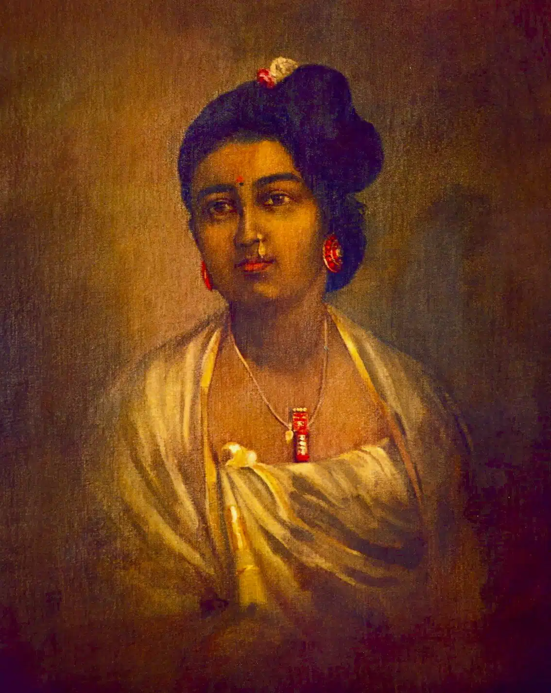 A portrait of Raja Ravi Varma’s wife Mahaprabha Thampuratti painted by the artist, date unknown. Oil on canvas. Courtesy of Jaygopal Varma, Travancore Family, Bangalore