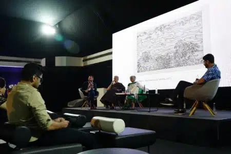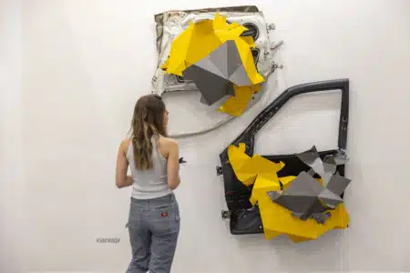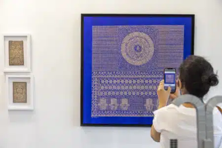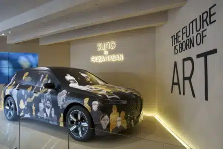 Celebrating 6 years of creative partnership, Presenting Partner BMW Group India returned to the fair and showcased a wrap for BMW’s all-connected and electric iX designed by young Indian artist Faiza Hasan, who was awarded ‘The Future is Born of Art’ commission. Hasan’s car wrap design reflects on the theme of sustainability and expands this into the community by including Urdu words like ‘suno’ meaning ‘listen’. Complementing this partnership, The BMW Art Talk given by Indian contemporary artist Atul Dodiya, one of the most prestigious artist talks, kicked off the programming schedule at the fair.