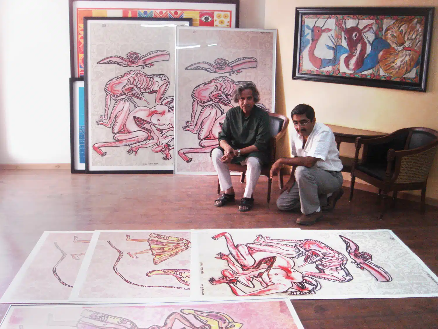 Seeing my commitment to art and this medium, Husain insisted that I should invite other artists to my studio. He introduced me to many of them from all around the country and I started working with the likes of S.H. Raza from Bombay, Jogen Chowdhury from Calcutta, Manjit Bawa from Delhi, Bhupen Khakhar from Baroda and Thota Vaikuntam who came all the way from his native village in Andhra Pradesh. Even teachers like K.G. Subramanyan and Jyoti Bhatt from my alma mater would come to Ahmedabad to work in my studio. Most of the artists who visited my studio ended up staying at my home which resulted in lasting friendships, conversations, connections, mutual trust and bonds that made us feel like we were one big family.