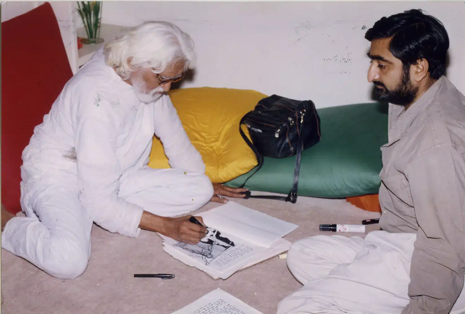 M.F. Husain and Anil Relia maintained a lifelong friendship even since their first meeting in the 1990s. Courtesy of Archer Art Gallery
