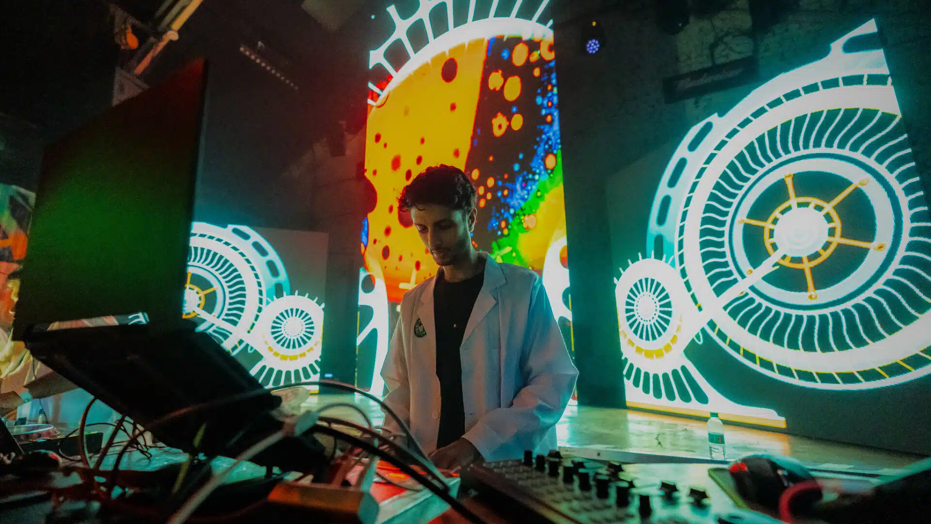 Dennis Peter and Yash Chandak, otherwise known as Non-Linear and Cursorama, are reshaping India’s burgeoning tech-art scene. Since 2018, this dynamic artist duo has redefined how we experience art, blending generative visuals, electronic music, and interactive systems into immersive multimedia installations guided by cutting-edge algorithms. They create works that invite audiences into mesmerizing environments that dissolve the boundaries between the organic and the engineered. Both artists came to the medium via unconventional paths — Dennis trained as an architect and musician, while Yash made his mark as a motion designer and live visual artist. Over the years, their practice has evolved to explore the intersections of art, design and technology, inspiring audiences to reimagine the relationship between organic ecosystems and engineered systems. They have brought their creative vision to major cultural platforms, from the Serendipity Arts Festival in Goa to global music events like Magnetic Fields in Rajasthan and Ozora in Hungary.