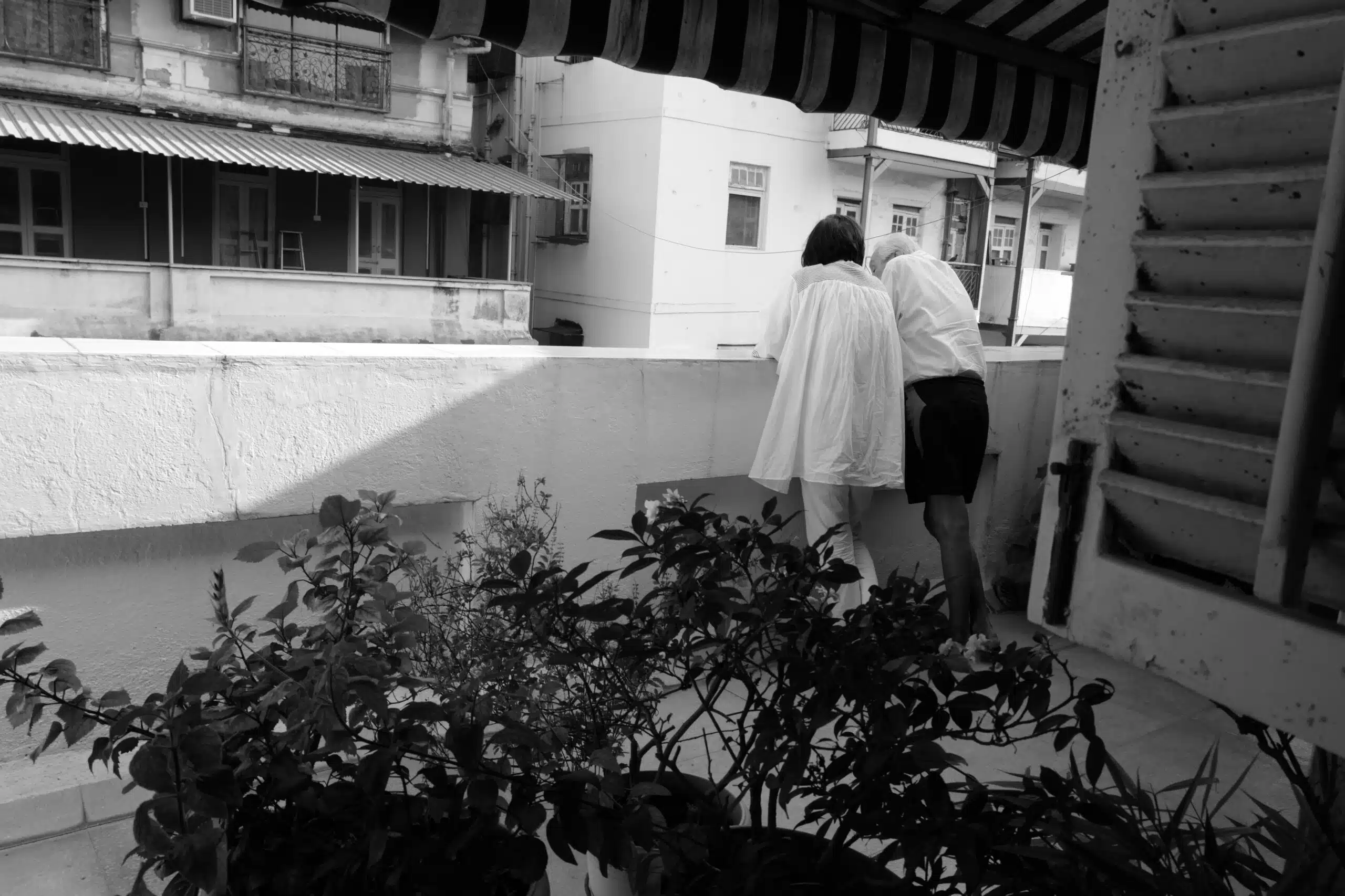 Sooni and her father, Rumi on the balcony at Cozy Building. Photograph by Alina Tiphagne