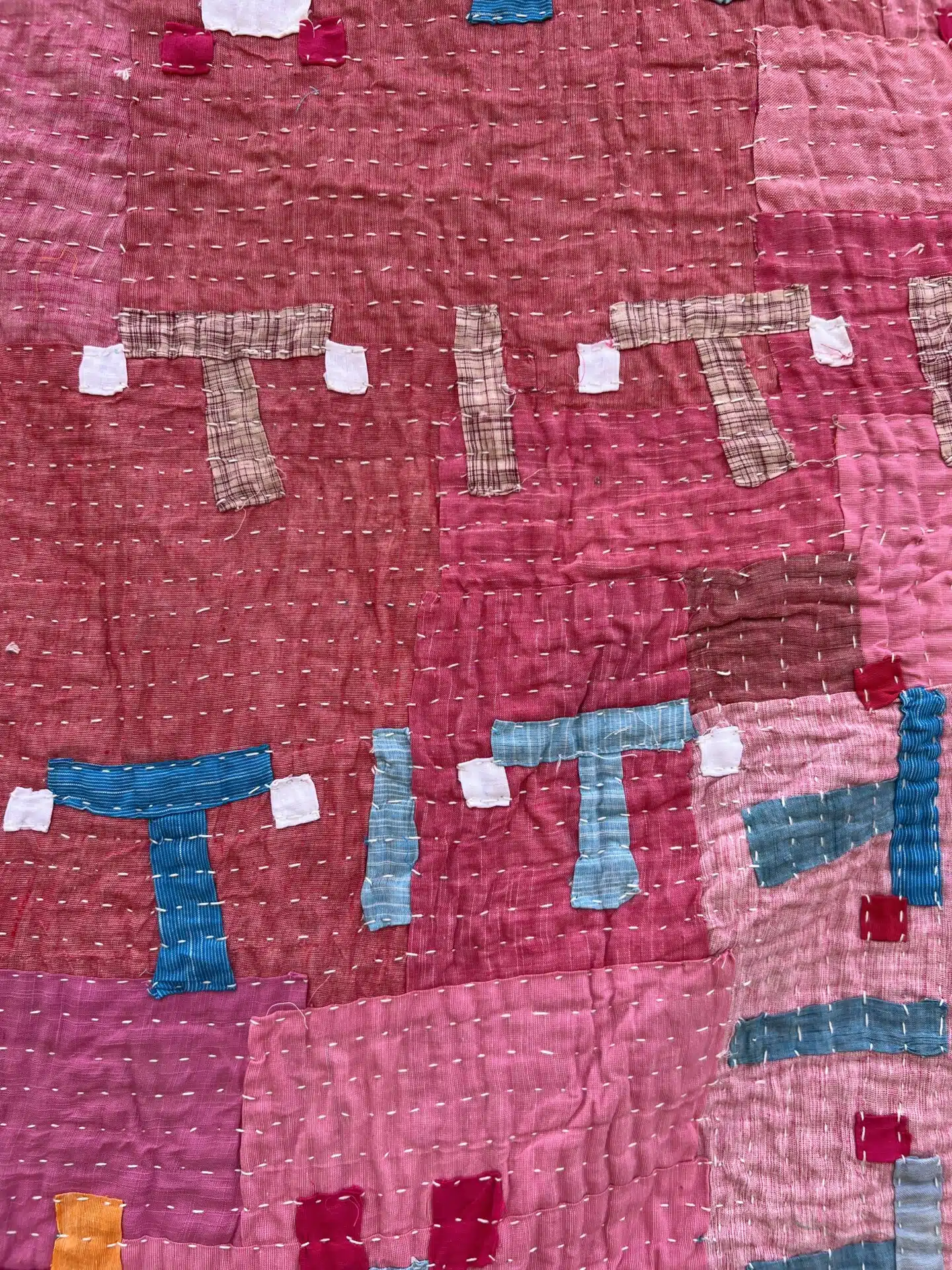 Instead, what emerged was an intuitive, aesthetic logic — shaped by the reuse of old fabrics in varied sizes and shapes.
