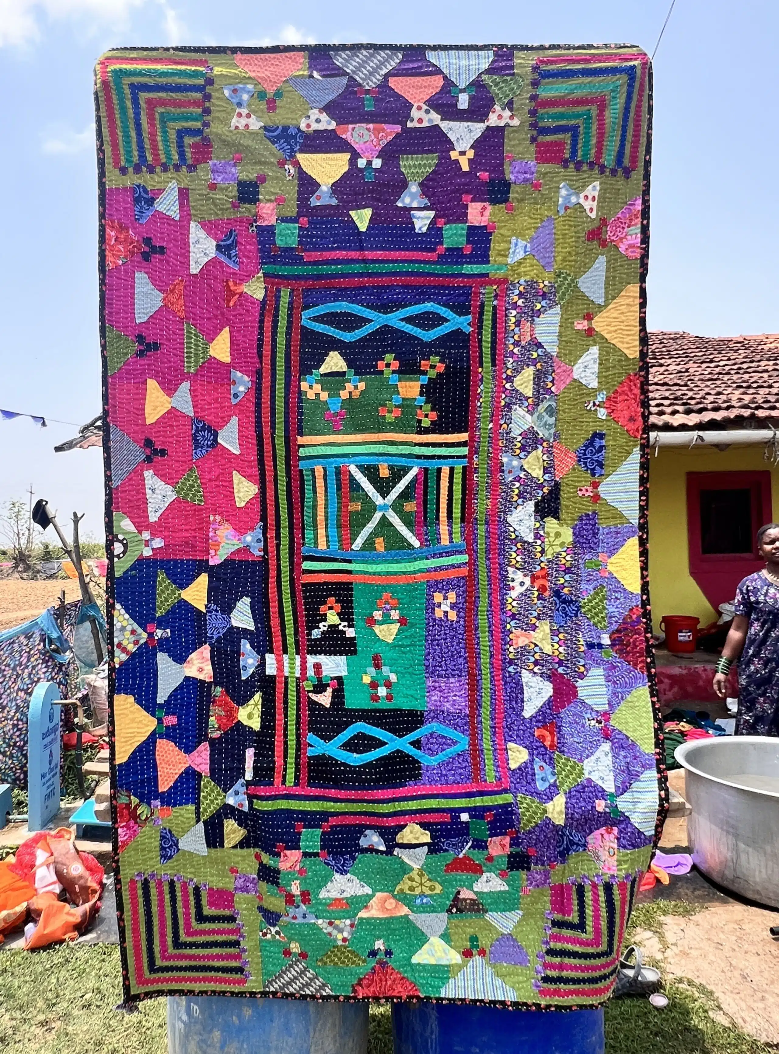 I have worked with women who stitch maps of their village—homes, trees, ponds, children—into a radiant, unreplicable design, and have witnessed mother and daughter duos, both quilters, living in the same household, with very different style—one spontaneous, the other symmetrical, as their way of reflecting inter-generational dialogue.