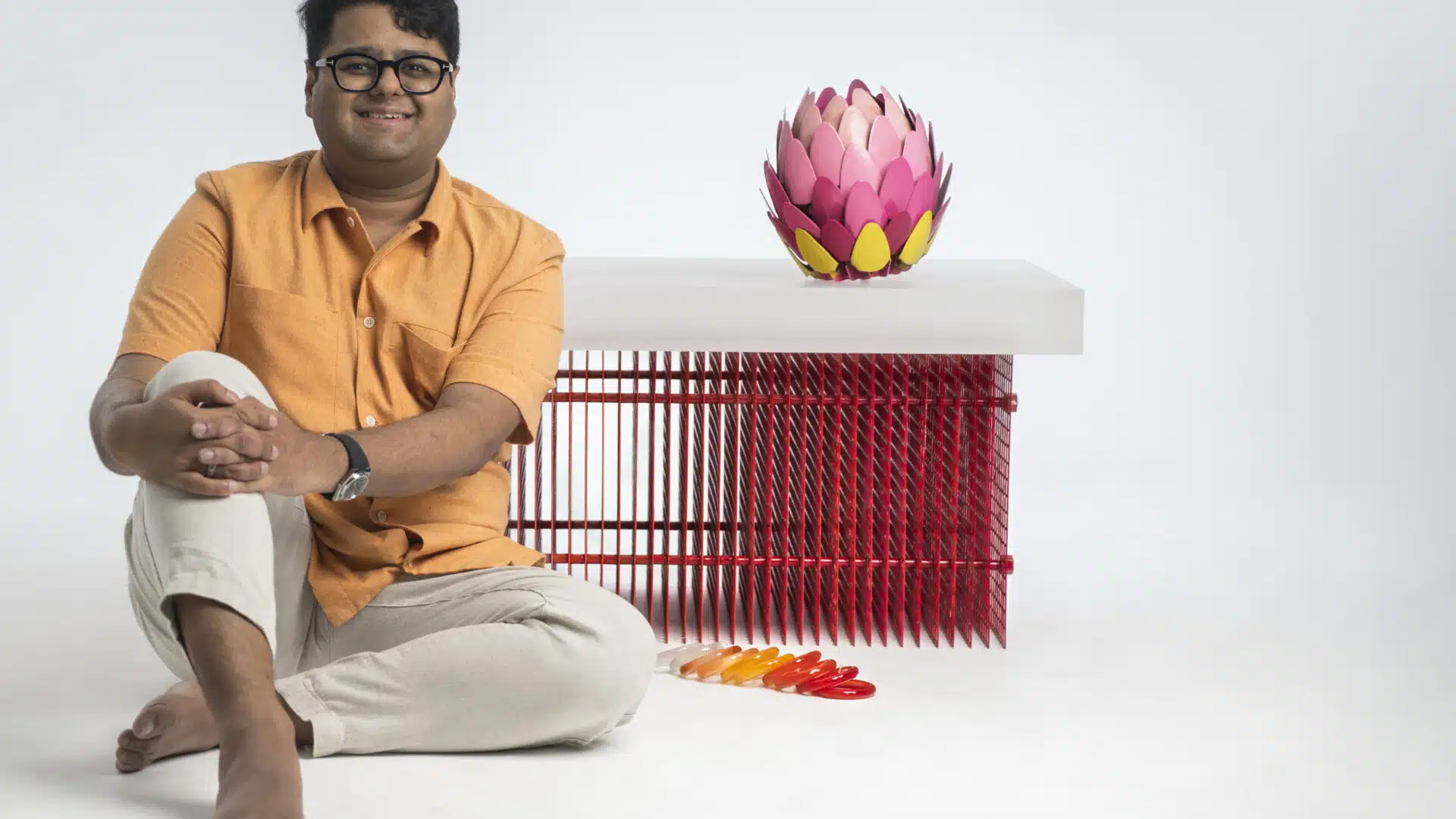 Rooted in personal experience and realised through collective making, Agarwwal’s practice moves fluidly between craft techniques, contemporary processes and storytelling. He works closely with artisan communities in places like Channapatna and Moradabad, allowing material knowledge and regional context to shape each piece. The resulting objects—whether furniture, lighting or large-scale installations—carry a sense of play and wonder.