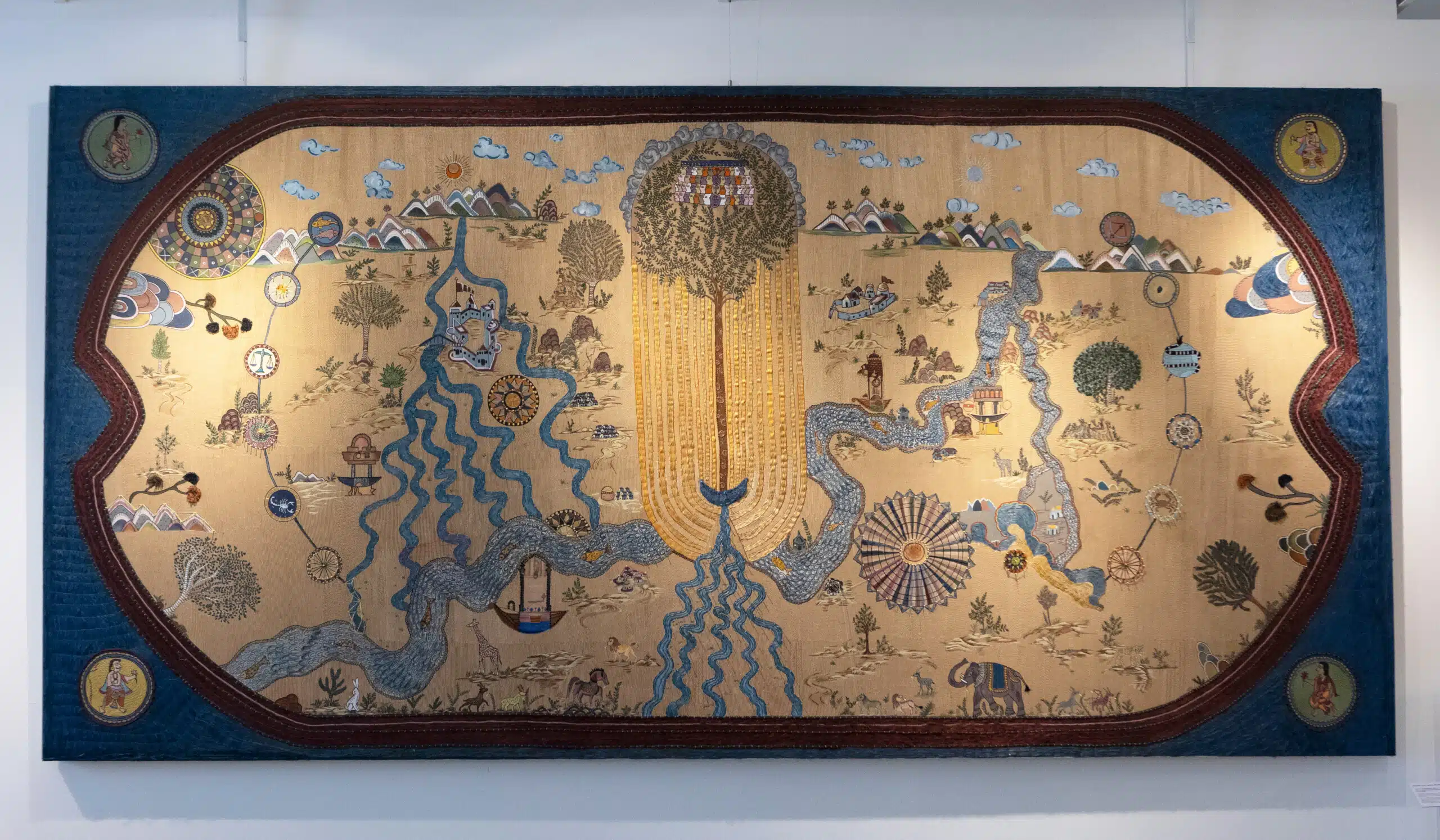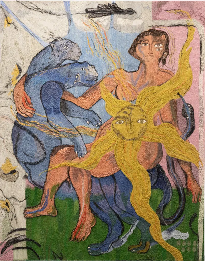 I began collecting Madhvi and Manu Parekh’s work almost 20 years ago. I find Madhvi’s works to be such a beautiful mix of rawness and divinity. Translating her lines with thread, for us, was tremendously exciting. With Manu, he has a specific work called Chant III where he explored vibrations through paint. For us, to translate that vibration to thread was immensely gratifying and sometimes quite mind-boggling. When you work with masters, you realise the depth of the discipline and how infinite it really is.