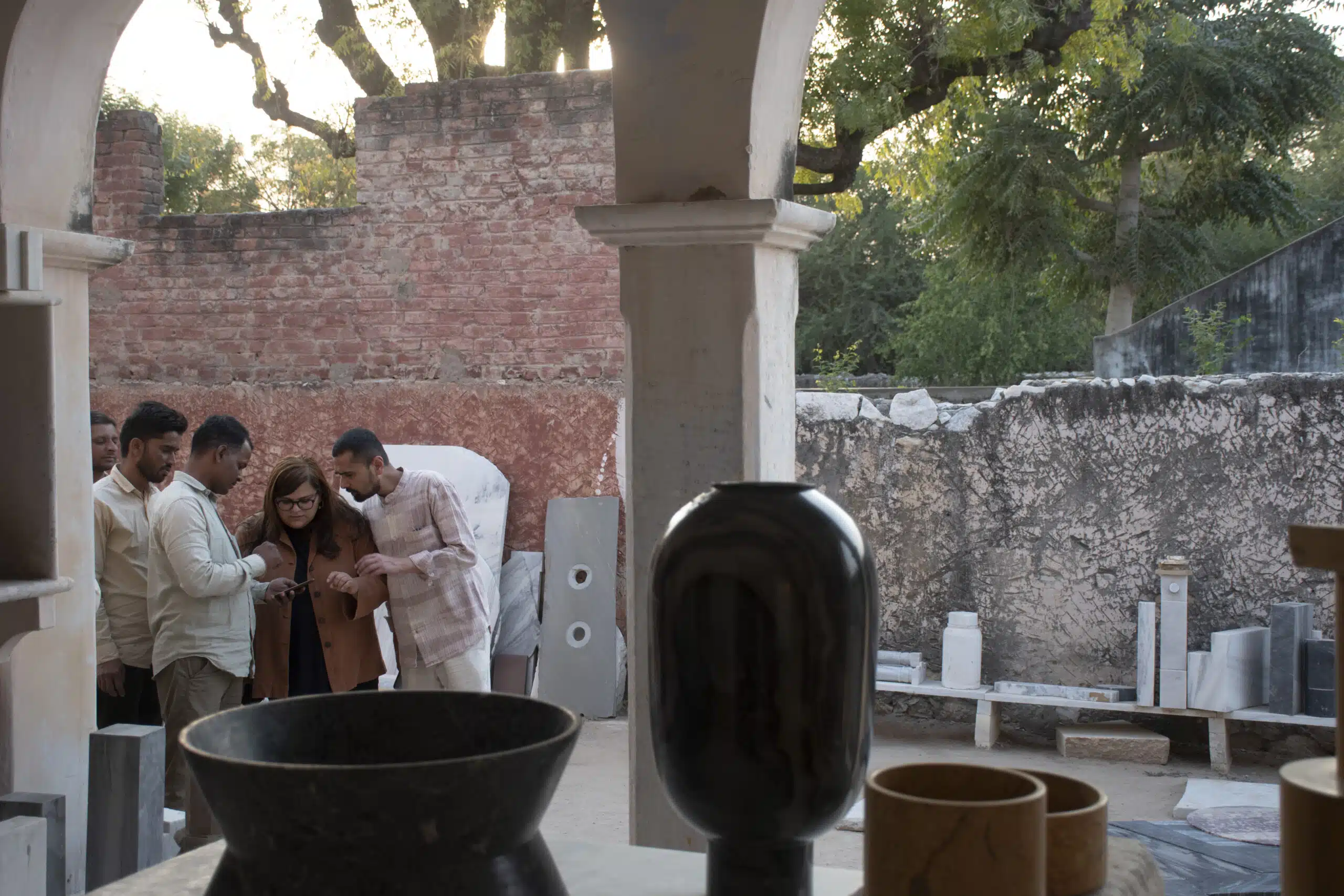 Here we speak to the founders of the studio, Dushyant Bansal and Priyanka Sharma about how Makrana, its various stones, craftspeople and ecology have shaped Studio Raw Material’s unique design philosophy.