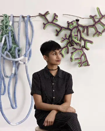 Transmutations weaves overlooked materials and the tactile practice of crochet into a textured meditation on care, labour and future visions. This outdoor installation uses discarded plastics and fabrics to reflect on the transformative power of imagination, and the ecological future of our planet. The canopy evokes the landscapes of the Nilgiri Hills, created in collaboration with the Women’s strength supported by Kinder Trust, Coonoor which empowers local women through skill-building. Pools of softness invite visitors to pause, rest and reflect amidst the chaos of life. As a testament to resilience and renewal, liactuallee reimagines waste, inviting us to reconsider our relationship with the world around us.