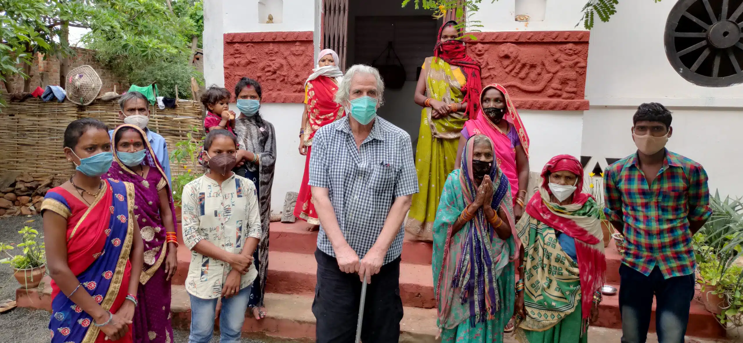 Mitch Crites met Jodhaiya Bai, her family and fellow Baiga artists for the first time on 24 June 2021 at the Ashish Art Gallery, Lorha, Madhya Pradesh. Courtesy of Nimish Swami and The Crites Collection