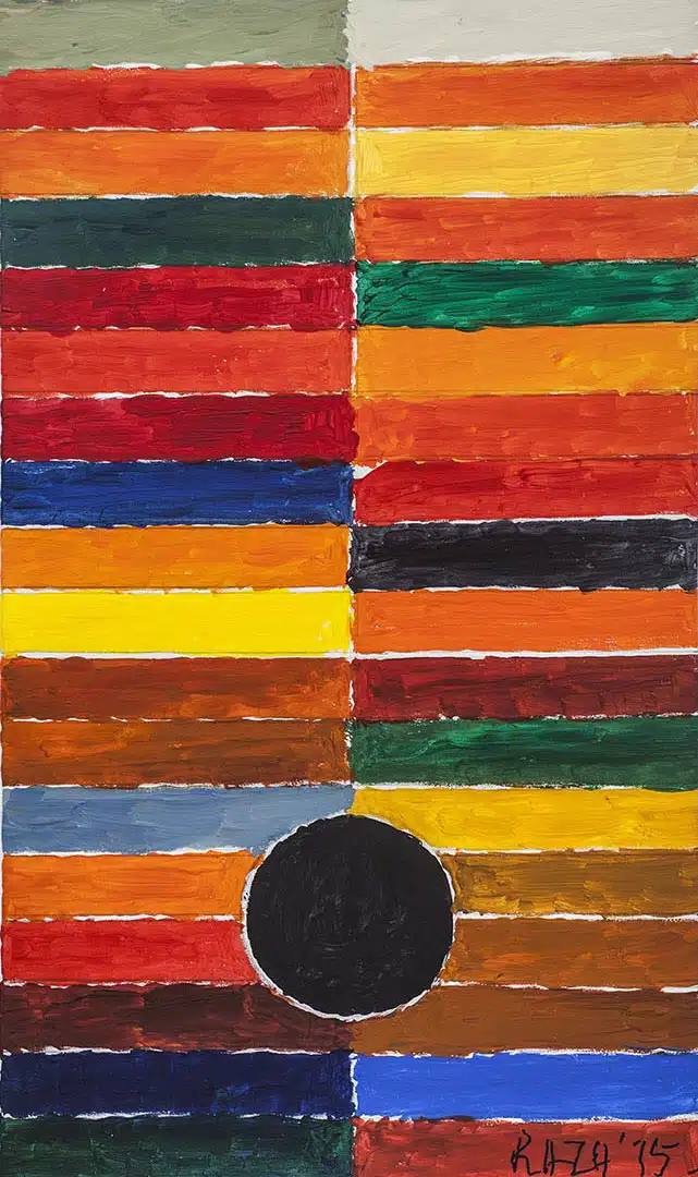 This suite of works being shown highlights Raza’s small works and drawing pages where he has not only written poetry but made drawings, which flow from him just as music does from a musician who has been doing riaz for years. A master colourist Raza evolved a personal plastic language in which he explored life, reality and nature. He also thoughtfully deviated from the dominant crisis and tension driven modernism, its dissonance to alternative modernity of peace, silence and consonance discovered in humility and tranquillity.