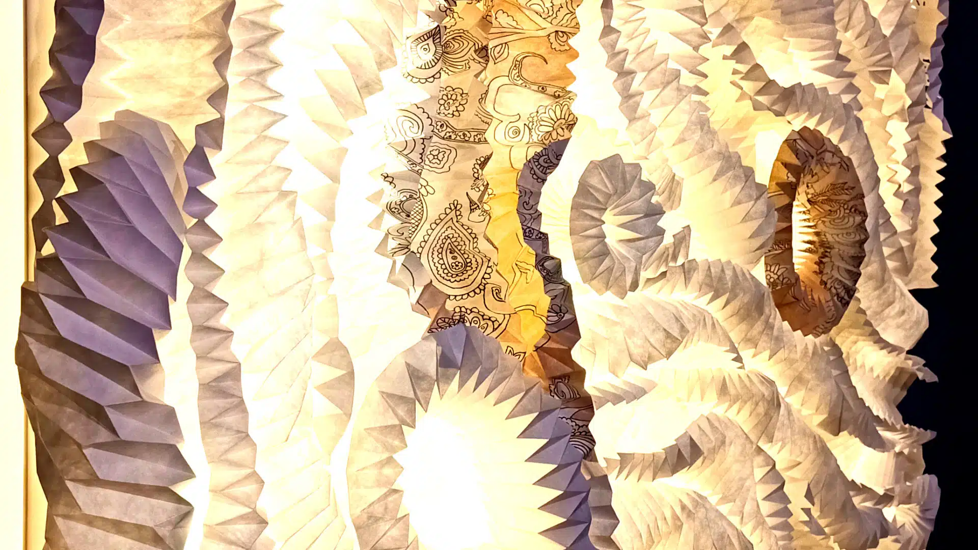 The works created for this solo exhibition delve into three themes: In the Margins and Edges, Within the Folds, The Inner Light, each exploring a distinct part of the artist’s practice.