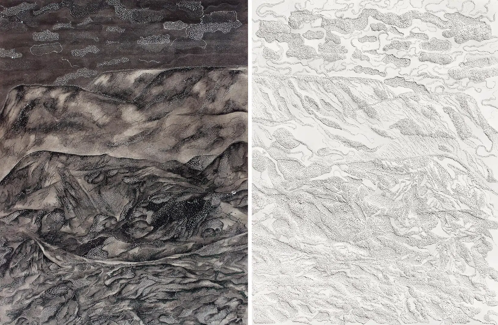 Manisha Gera Baswani is a multidisciplinary artist, weaving expressions comprising painting, photography, sculpture, and poetic writing. The exhibition is the artist’s first solo show after a gap of a decade, with pin-incision drawings on paper constituting the largest segment of the exhibition. The drawings grew out of the artist’s encounters with pain and illness. What began as depictions of organs – the human heart, brain and spinal cord – took on a life of its own over time, as both medium and mode of expression, and became a fully formed visual vocabulary that she deployed with painterly precision to express a variety of themes, imageries and aesthetic concerns.