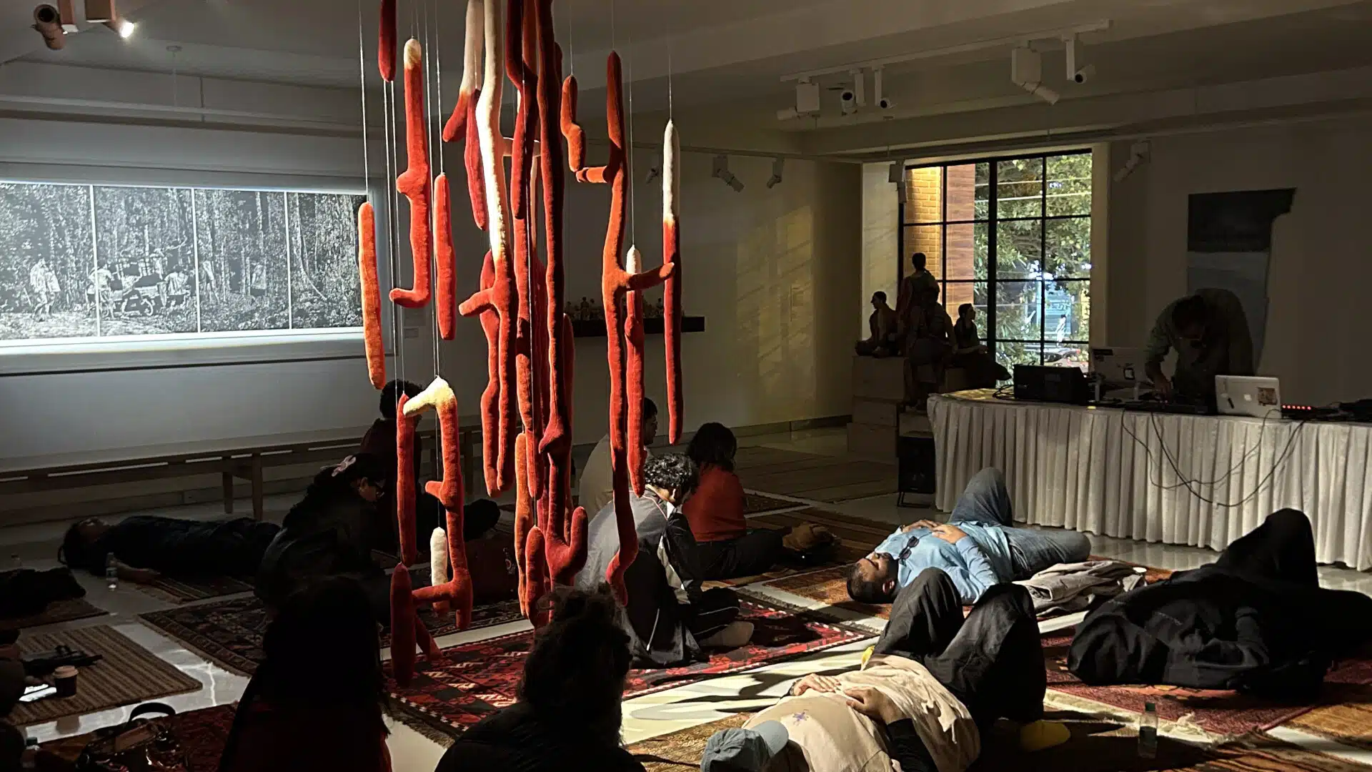 ‘Architectures of Listening’ looks at reorienting how one is in the space, recontextualising and unsettling how one encounters it. By activating unremarked corners, darker margins, and thresholds of the space through sound, this session with Moss and Stain invites a slower dwelling in the space and heightened sensitivity to the objects around.