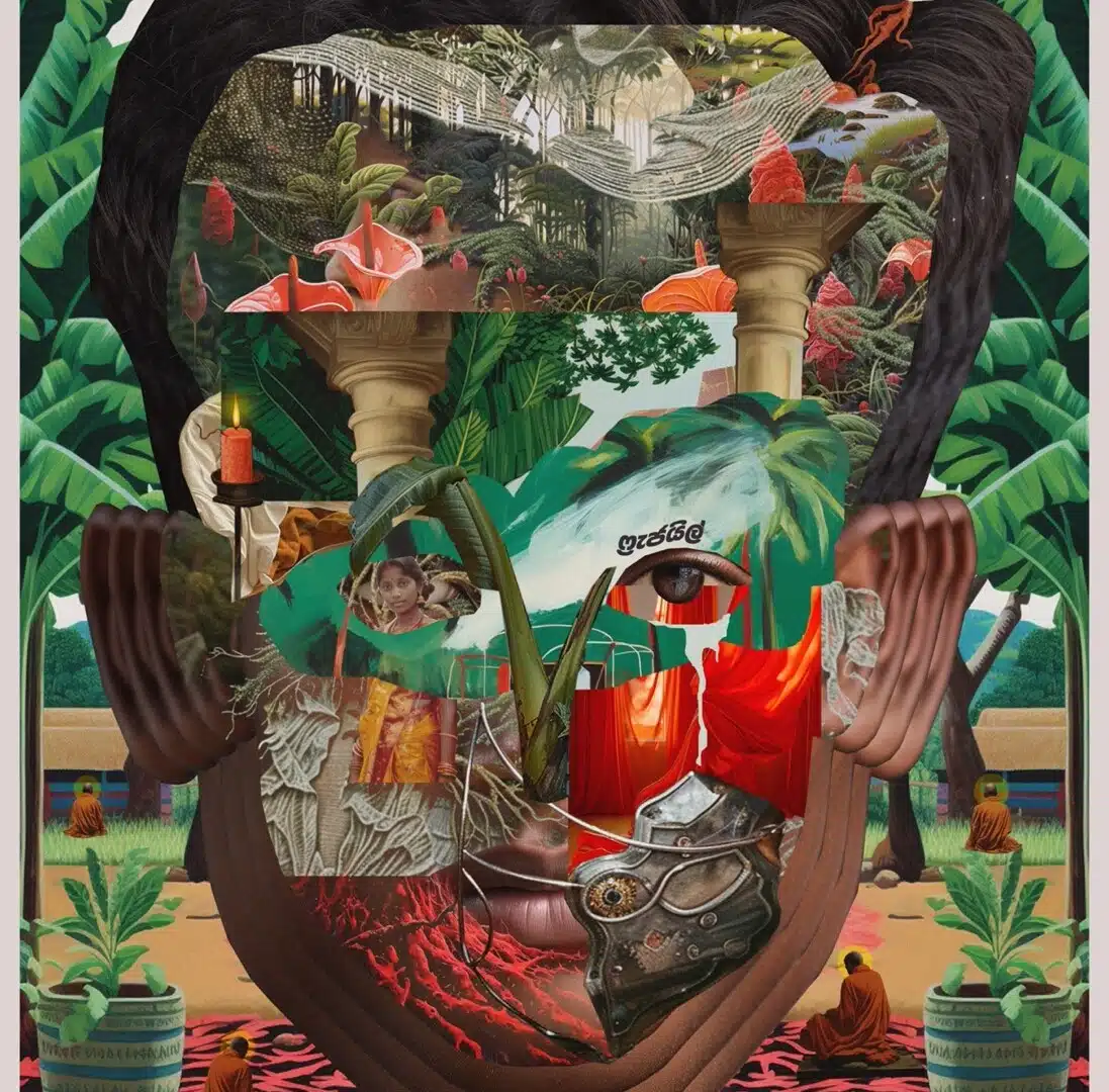 PRSFG presents Automata, a solo exhibition by artist Muvindu Binoy, it is a collaboration with collective consciousness, a journey into the strange and wondrous interaction of human perception and technology. The series unfolds like a fever dream, brimming with tropical abundance where discordant fragments; vintage photographs, strings of text and assorted cultural memorabilia are layered and assembled into otherworldly vistas. Embracing the surrealist tradition, Muvindu probes and provokes, presenting visual conundrums that trace the shifts between reality and imagined trajectories. Muvindu investigates perception in a world where technology rapidly advances, resulting in a visual surplus that reflects the overwhelming nature of digital culture.