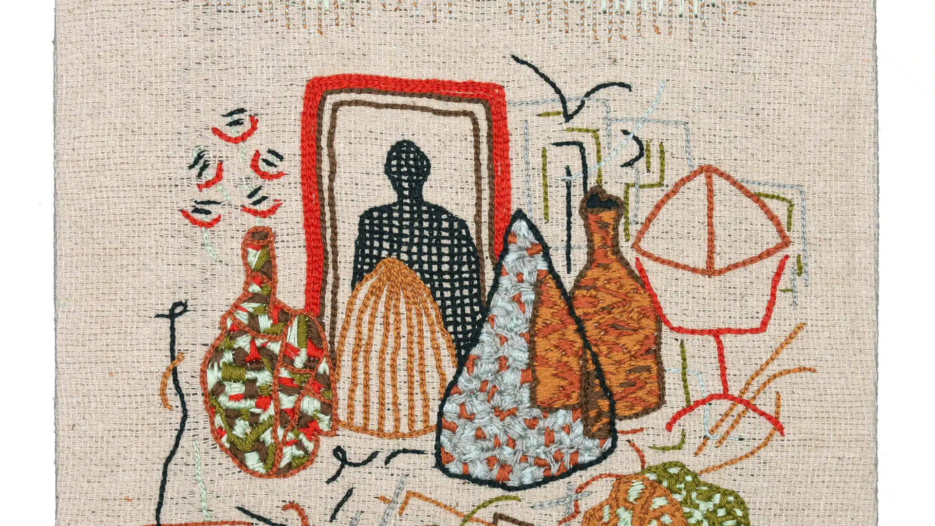 The title borrows an all-encompassing term from German, for a person’s spiritual and psychological journey. In the works created from his time in Mumbai in 2018 till 2021, Katki uses embroidery and archival objects sourced from his family home to explore themes of spirituality, migrant identity and sexuality using domestic cloth as its grounding framework.