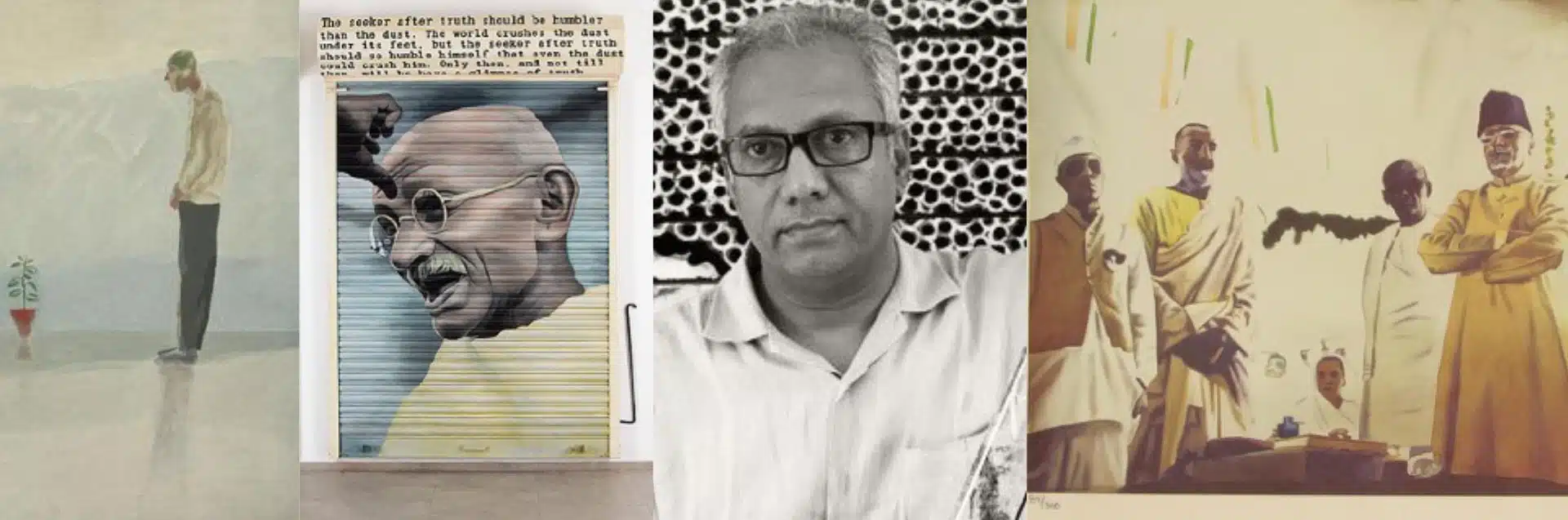 Atul Dodiya is one of India’s most distinguished artists. His works narrate as much about the history of art and the socio-political climate of India as they are enmeshed in autobiography. Dodiya grew up in a middle-class Gujarati home in Ghatkopar, Mumbai. He trained at the Sir JJ School of Art and received acclaim early in his career for his paintings inspired by figurative artists such as Bhupen Khakhar, Sudhir Patwardhan, and Gieve Patel. He strengthened his unique vocabulary informed by French and Gujarati literature, Euro-American masters and modernists, global cinema, and popular culture while studying at the École des Beaux-Arts (1991-2). Through his paintings and assemblages, Atul Dodiya engages with both political and art history in a way that entwines global /public memory and local/personal experience. In his most recent series of paintings Dodiya appropriates the images and styles of famous artworks. By doing this he pays homage to his influences, but also ‘borrows’ their identities through a kind of painting role-play: copying becomes a form of ‘channelling’ or re-enactment, weaving the master’s identities and ideas to Dodiya’s own (and vice versa).
