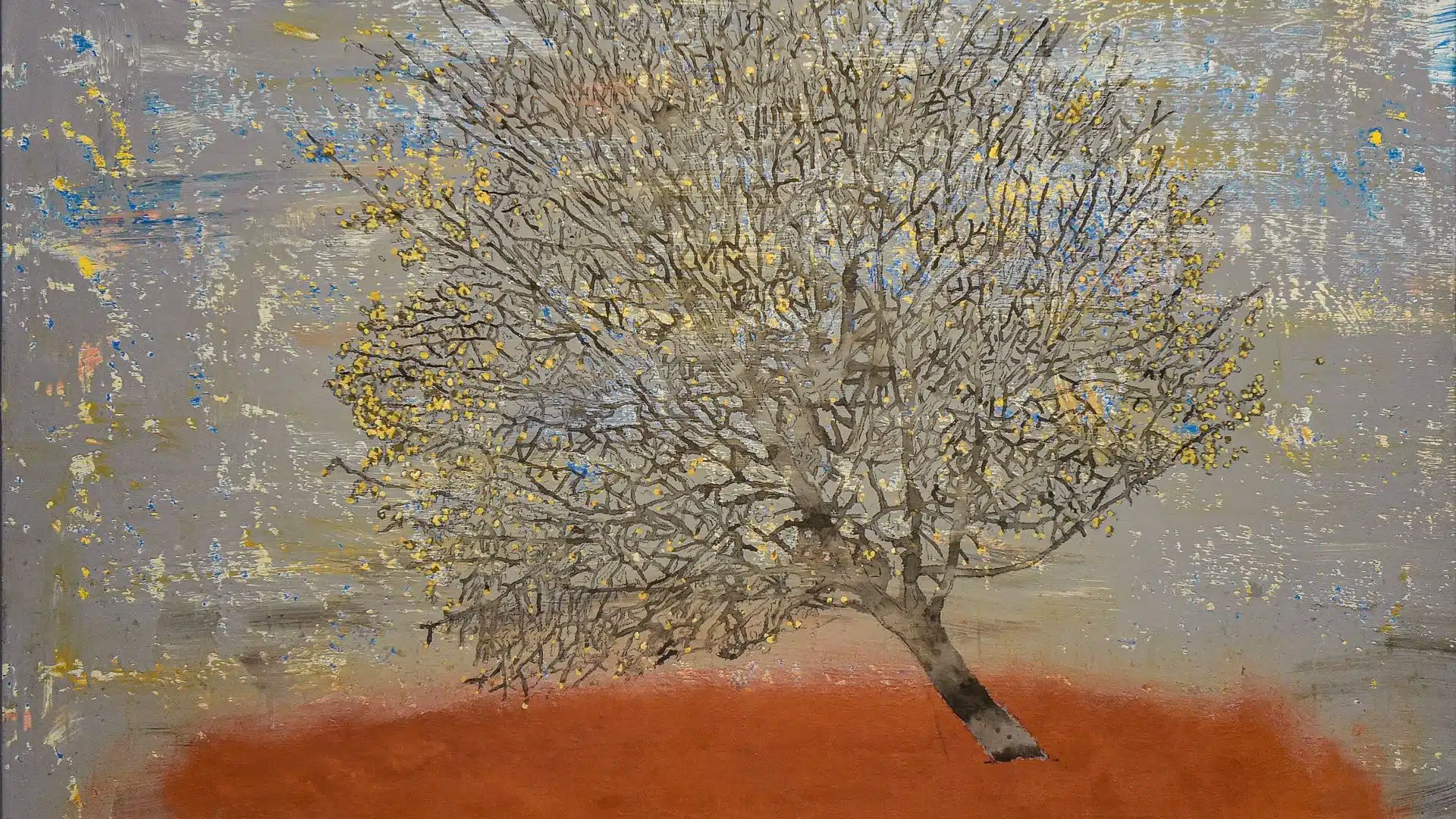 Several of his recent paintings and sculptures depict trees. Looming like sentient beings in different colours, textures and forms, they stand for the dualities of nature and human artifice, spirituality and materiality, permanence and transience, darkness and light. Iranna paints these in layers of acrylic or pigment mixed with earth materials such as ash, coal or brick dust, giving the surface of his canvases a textural, palimpsest-like quality.