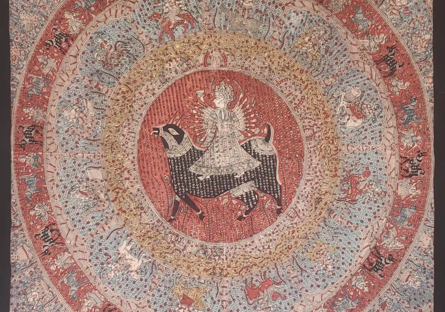 The display celebrates both the Devi and her vahana with painterly and sculptural renditions in Madhubani and Gond styles as well as miniature bronzes and life-size wooden works, amongst much more.