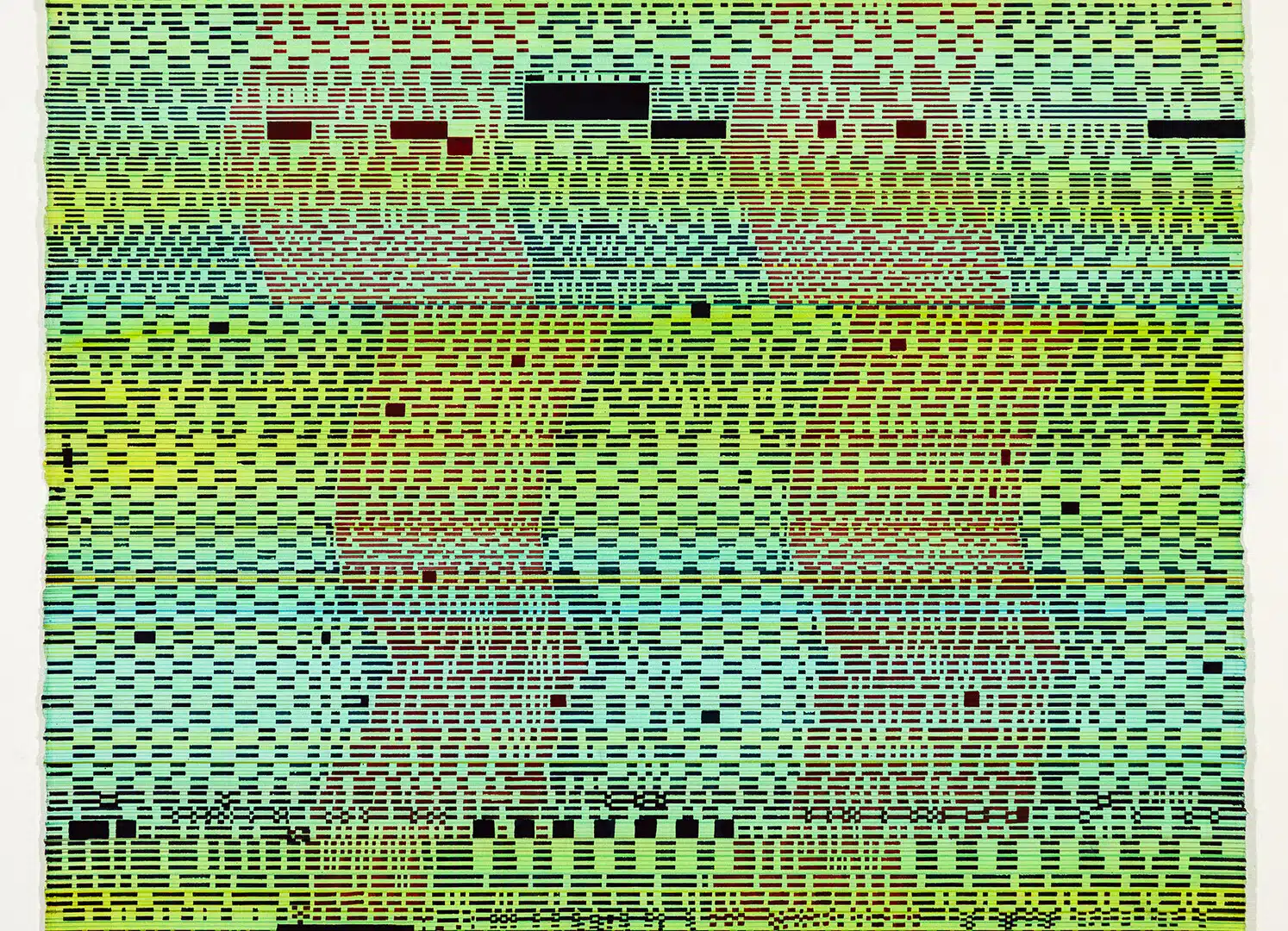 BluePrint12 Gallery is pleased to present Echo Chamber, a solo exhibition of new paintings by New York–based artist Visakh Menon. In Echo Chamber, Menon expands his decade-long inquiry into the relationship between abstraction, human labor, machine logic, and perception in an increasingly screen-saturated world. This exhibition situates his recent paintings within a broader inquiry into the epistemologies of perception, the nature of information, and the fluctuating boundaries between human and machine authorship.