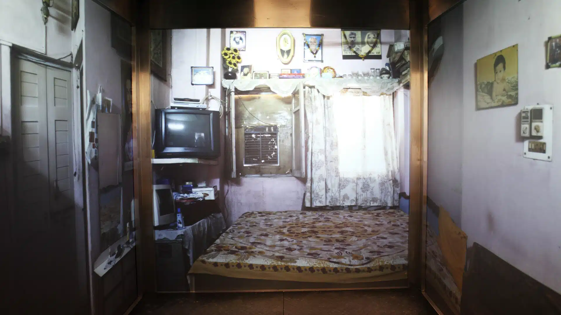 Step into Gigi Scaria’s ‘elevator’ to travel through the various social strata that make up an Indian megalopolis. Through video projections that move along the sides of a fabricated elevator, the artist takes us up through the domestic spaces of vastly different kinds of people, finally leading to an open terrace looking out to a cityscape of rooftops. As we move up the world, we see scenes of the harsh realities and inequalities of the city, exposing the paradoxes of urban life. Inspired by the artist’s move to New Delhi from his native Kerala in the late 1990s, Elevator to the Subcontinent was conceptualised and created for the 54th Venice Biennale in 2011.