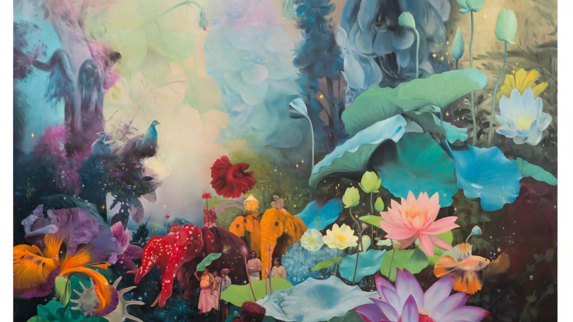 Saskia Fernando Gallery presents ‘Elsewhere’, an exhibition by artist Sandatharaka Abeysinghe.‘Elsewhere’ imagines a surreal realm submerged beneath water, where terrestrial flora has evolved into towering giants, creating a haven for a forgotten civilisation.