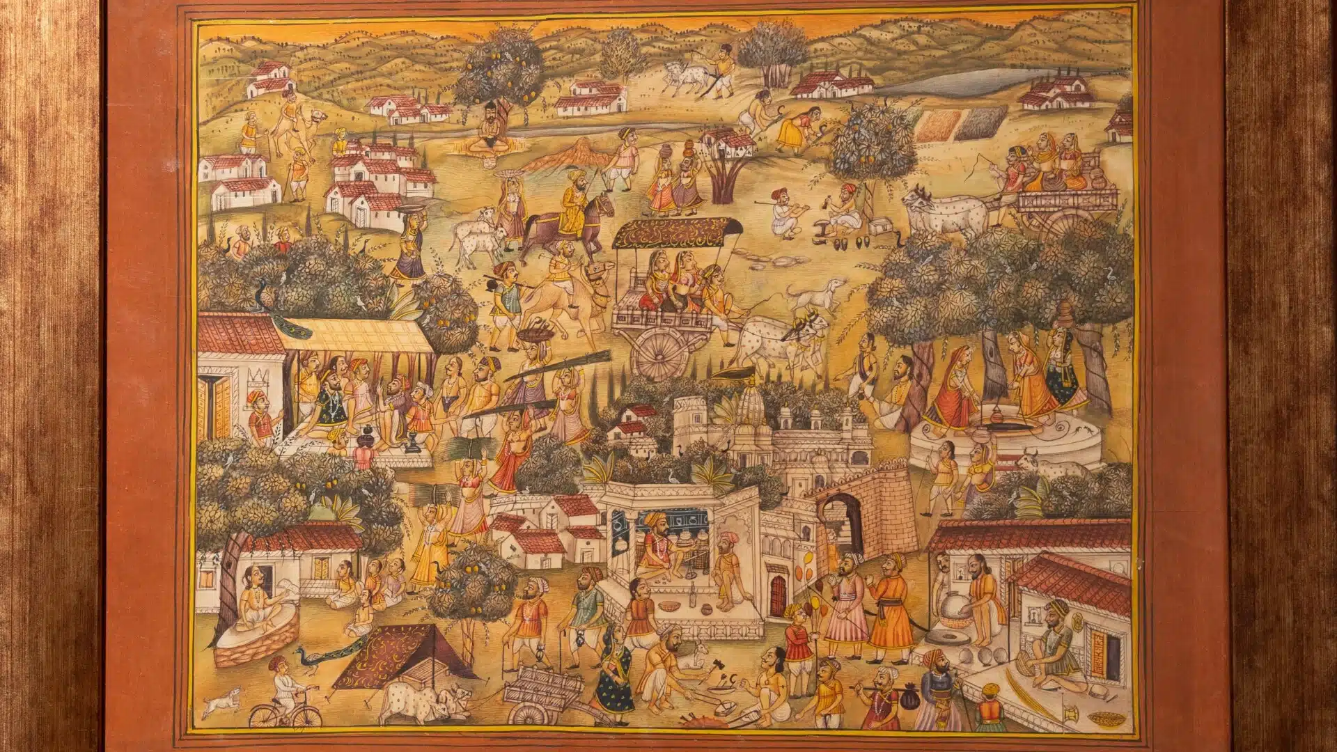 This title of this show गेरू / Geru , is a painterly nod to the natural hand mulled Indian red ochre pigment that has been used for centuries in India, and the exhibition showcases traditional techniques and works such as Mata Ni Pachedi, Pichwai, Kalighat, Pattachitra, Gond, Tanjore as well as miniatures.