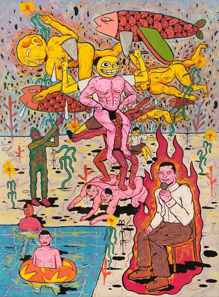Through the works, the artist explores their experiences of coming to terms with adulthood, their process of understanding and accepting childhood trauma, navigating feelings of alienation and paranoia, and struggles with gender identity.