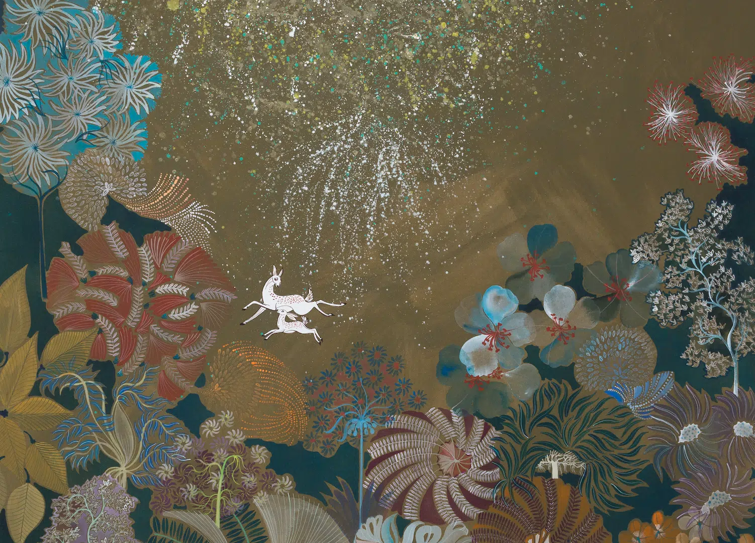 Kalakriti Art Gallery presents Infinite Reminders, a show by artists, Nishi Chaitanya and Priyanka Aelay, inspired by their intimate environment, responding to nature and its manifestations. It brings together artistic perspectives globally to ruminate on the mythical, enchanted forest and wildlife. The exhibition emerged out of a longstanding interest in the natural world, and artists’ roles in reimagining it. The series of paintings in this exhibition is a tribute to the depth of its vast expanse, an exploration of the life cycles within the forest, and a re-look at the vanishing presence of the characters from the folk tradition and literature.