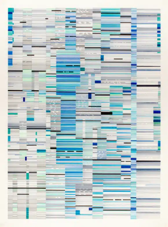 1×1 Art Gallery presents Interference, a series of otherwordly paintings by diasporic artist Visakh Menon. The Interference series of paintings depict geometric abstraction and colour field paintings, with a process transitioning from digital to traditional mediums of drawings and paintings, driven by the notion of repetitive mark-making as an act of meditation. These abstract paintings and drawings aim to create a visual space derived from algorithmic aesthetics with the repetitive lines creating optical and spatial shifts referencing screen space.