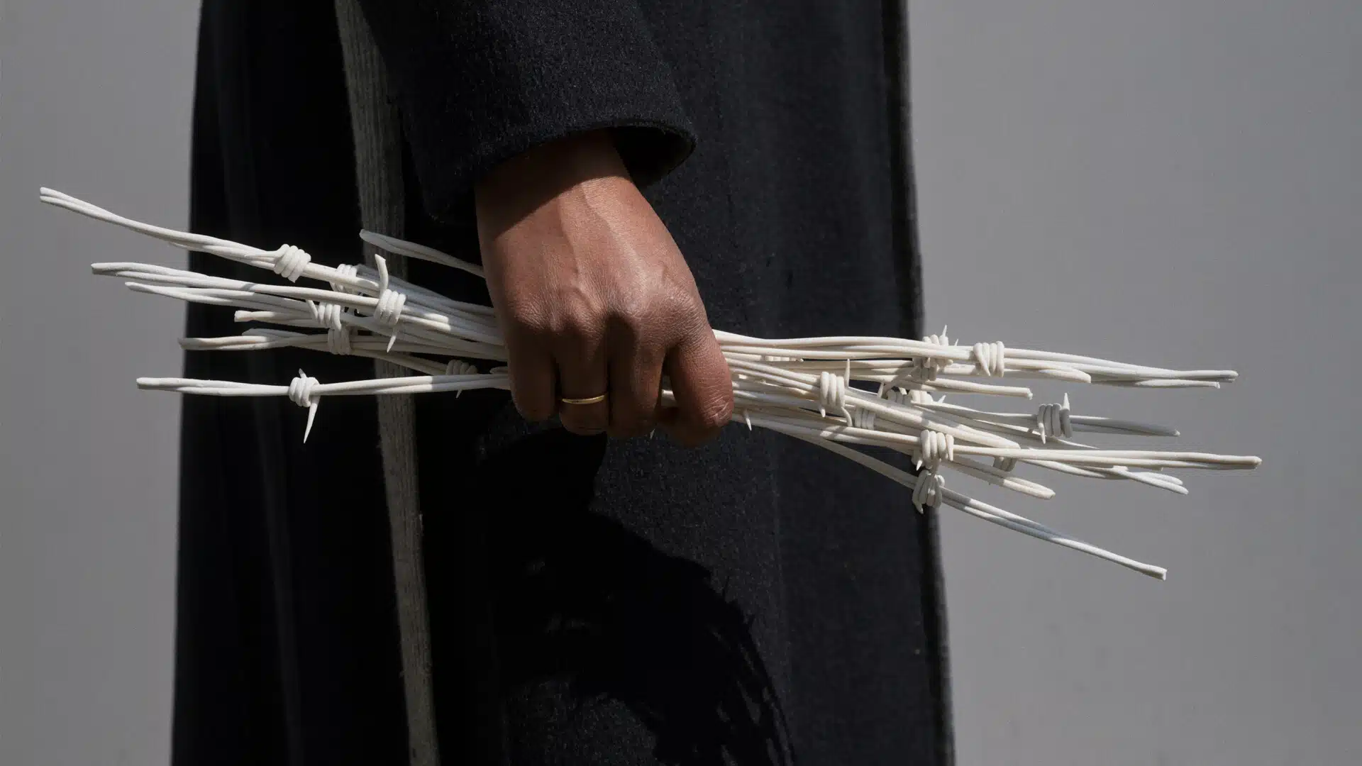 Aargauer Kunsthaus presents a solo show of works by Ishita Chakraborty, recipient of the 2024 Manor Art Prize Aarau, which is awarded every two years to support young artists in Switzerland. The recipient is awarded the opportunity for an individual exhibition with publication at the Aargauer Kunsthaus. In a series of new works, the artist and poetess links ecological and socio-political questions: Songs of resistance, barricades made from glass, an installation of hundreds of barbed wires made from porcelain, and a room-size wall drawing on the tropics conjoin to form a holistic view of the current state of the world and the environment.
