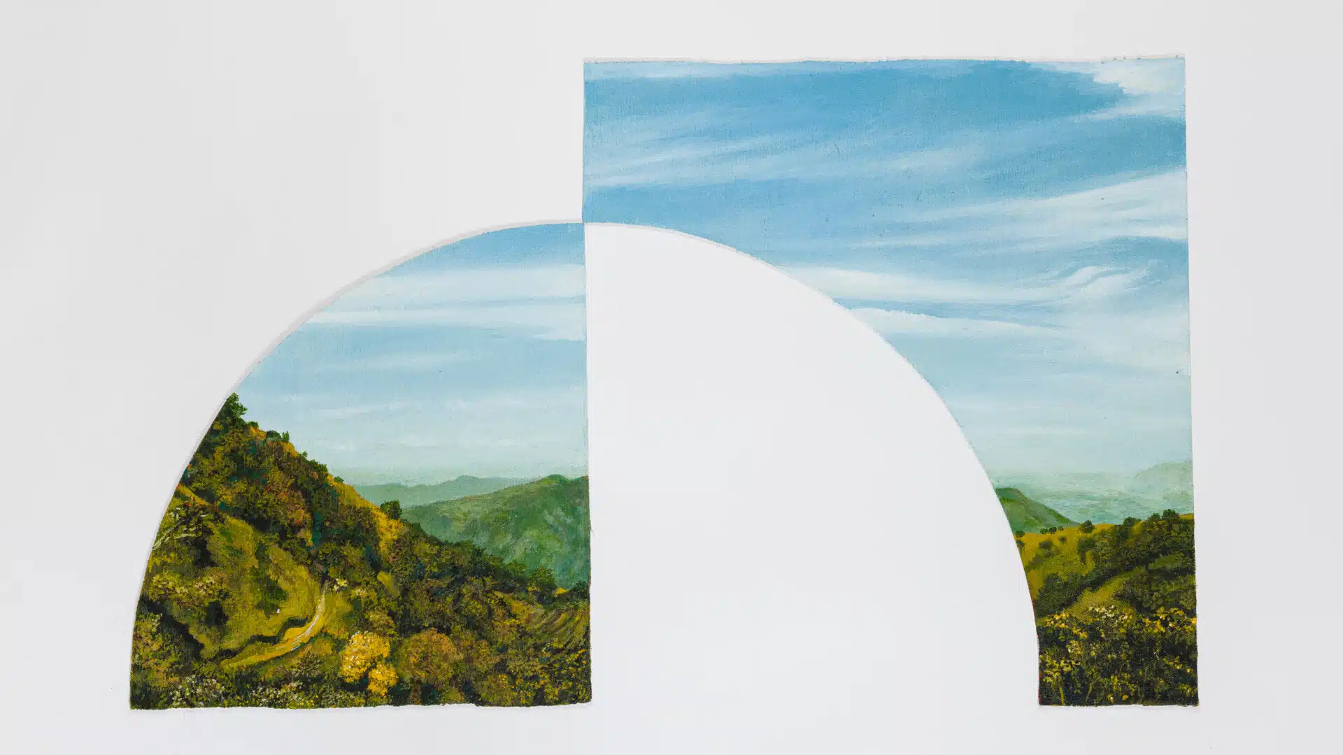 Muhanned Cader paints and draws majestic landscapes vitalised by jewel-like pigments, soft layers of charcoal, and their irregular shapes. Fragmenting the natural world through collages, at times organised into accordion books, he creates animated visual vignettes.
