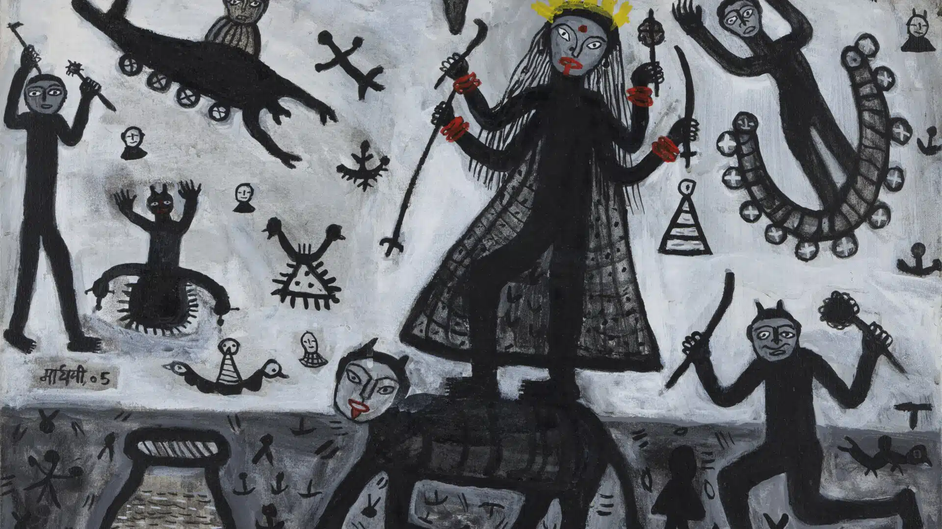 It explores Kali and her cohorts of the divine feminine. Drawing on both narrative and abstraction, Kali continues to fascinate as a fluid and deeply engaging subject in art, retaining her allure and profound resonance—in reverence and in rebellion.