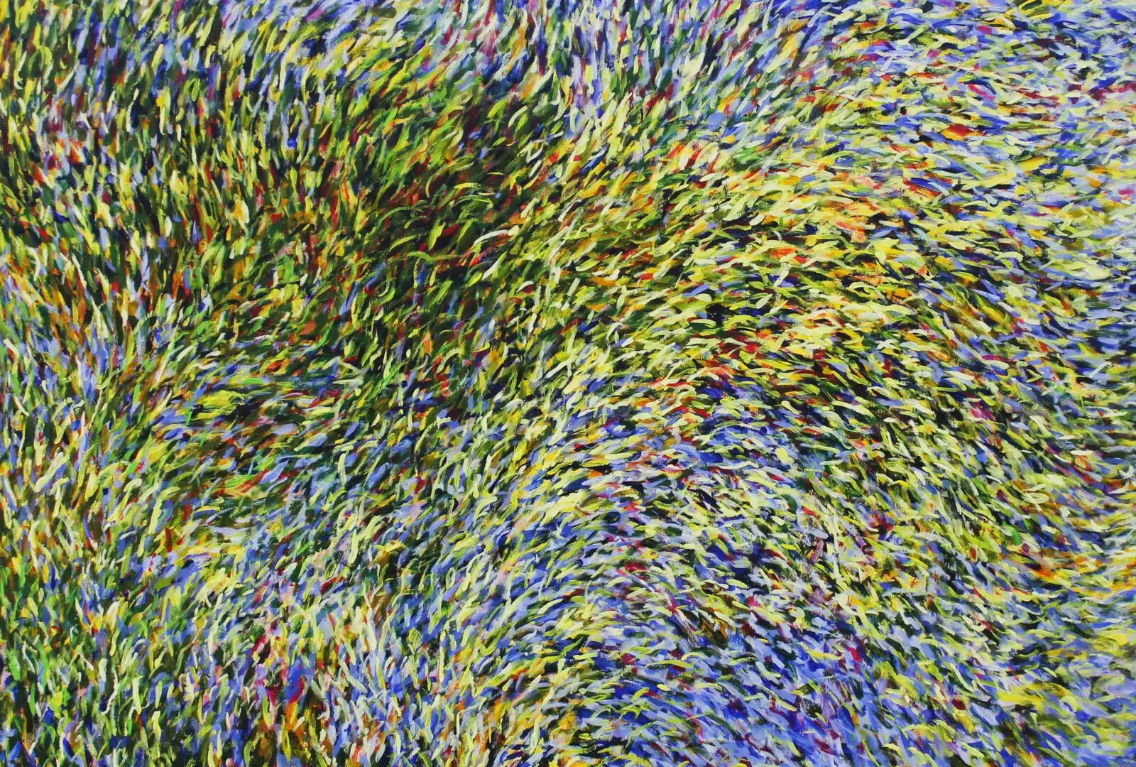 Saskia Fernando Gallery presents Kaze no Iro, a solo show by Ruwan Prasanna. The show is an ode to the fickle, and unpredictable nature of wind. Prasanna’s uplifting palette captures the buoyant mood evoked by the passing wind as it jostles playfully, on its route to an undefined destination. The series is a celebration of the transient phenomenon of nature that makes itself visible as it ruffles tree leaves into wakefulness and stirs up dust to cause a commotion.