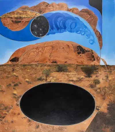 The group of paintings at the exhibition was inspired by Behera’s own travels across Central and South America, and Australia, and they expand upon his lexicon of landscapes that are fused with astronomical observations. In Behera’s paintings, the viewer finds himself within a vortex with scant attention paid to gravity or rational thought. We experience the artist’s experience of visiting a site, in all its complexities, where multiple viewpoints and elements converge over time. The subject of Behera’s works is the relativity of simultaneity, the principle that empirical observation is not absolute and depends on the observer’s frame of reference.
