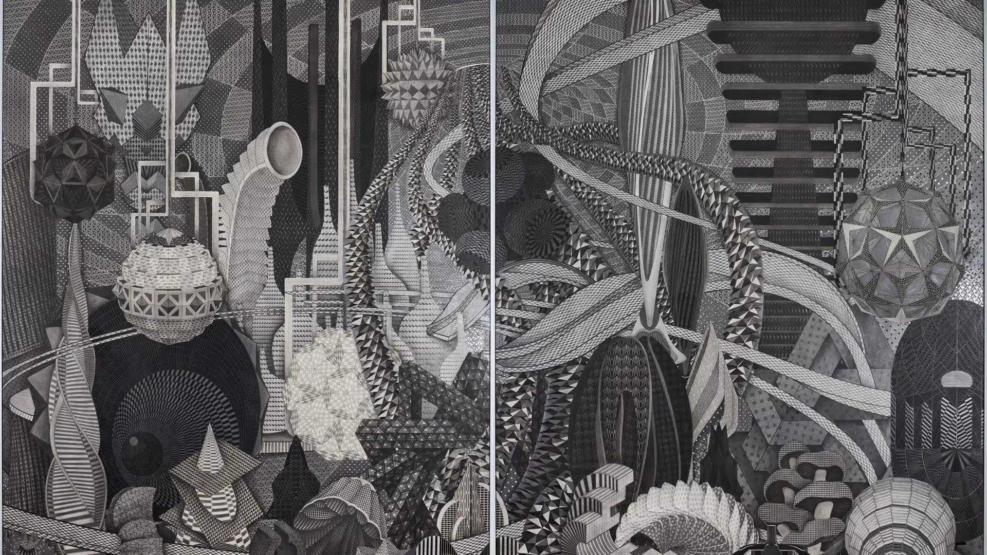 While Bhagyashree Suthar applies meticulous detail to create forms that oscillate between the man-made and the biological, Rebecca Sharp’s fantastical worlds hold within them an innate sense of intimacy. Mexican artist Rodrigo Hernandez’s own utopian universe finds its rhythm alongside the works of Mona Hatoum and Rivane Neuschwander, both portraying a different distortion of reality. Adding to Sarah Morris’s beautiful night-time painting, are the works of Dhruva Mistry, Edgard de Souza, and Mounira Al Solh, each creating a striking dialogue of their own.