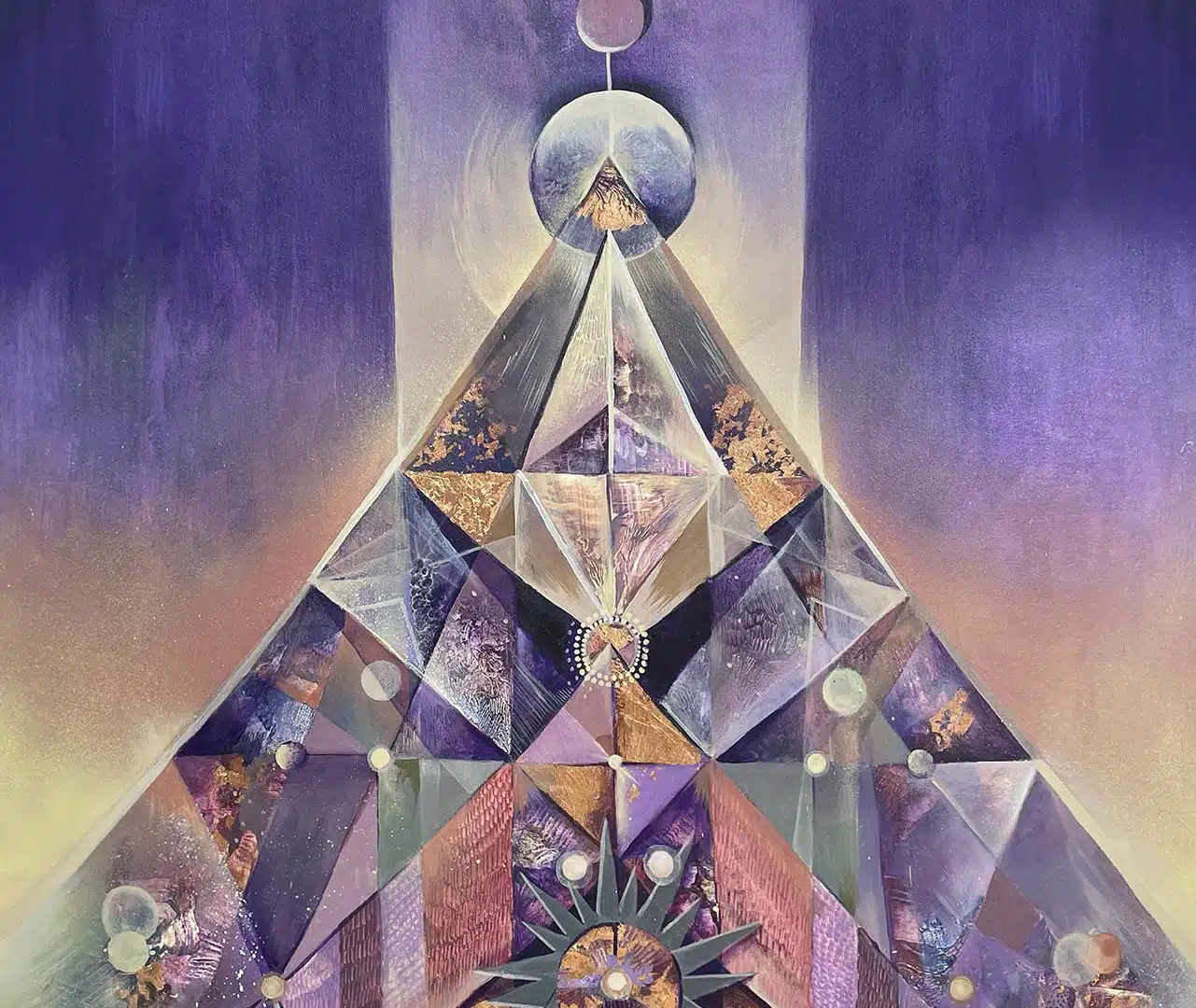 meditation for inspiration. She explores the motif of the triangle to visually represent these