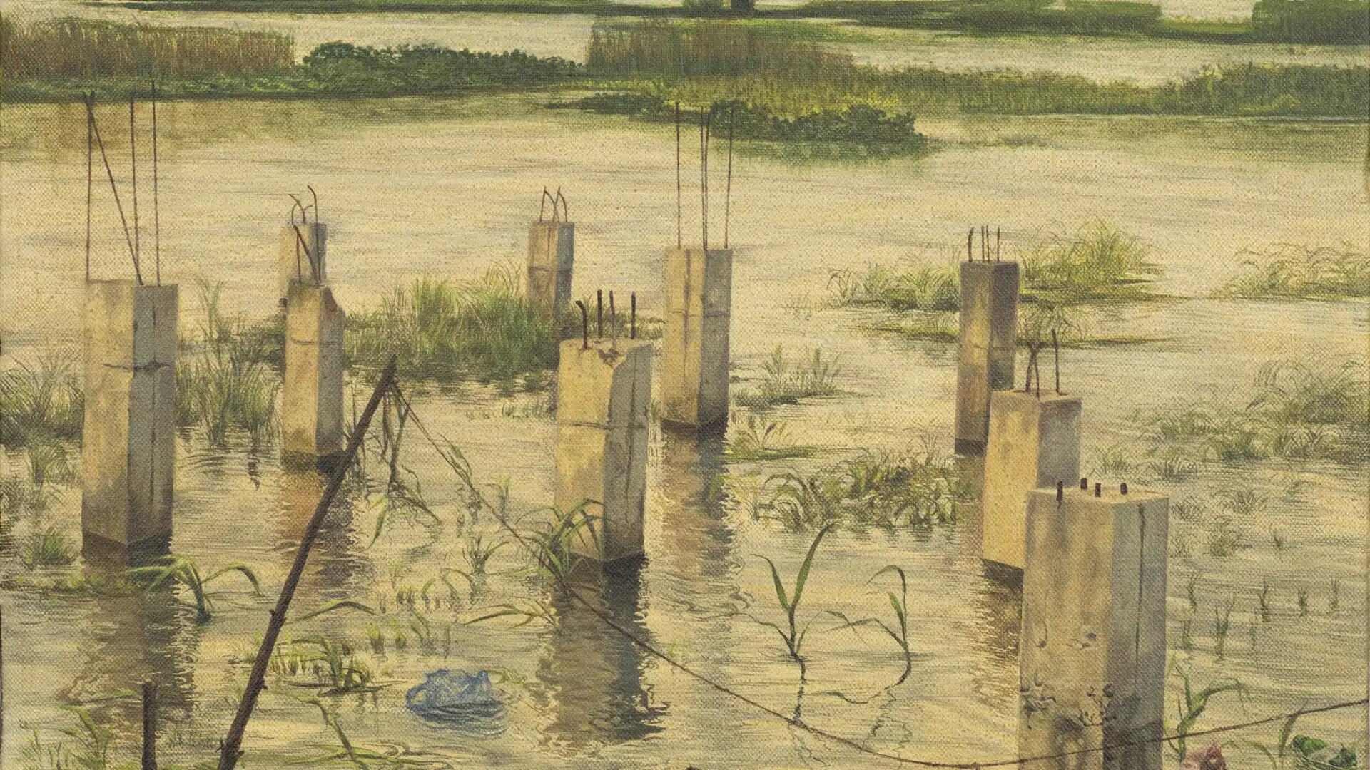Emami Art presents Morphology of Water: A Project by Santanu Debnath, marking the first on-site solo exhibition by the artist at Emami Art. Deeply rooted in the everyday life of his native village, Debnath’s practice draws from the ordinary scenes and lived realities of the local people. This body of work centers around the natural waterbodies—ponds and reservoirs—that once played a vital role in structuring communal life, but are now in decline. After receiving formal art education in Kolkata, Debnath returned to his village, choosing not to depict its idyllic landscapes, but to focus instead on the overlooked elements that sustained its socio-ecological fabric.