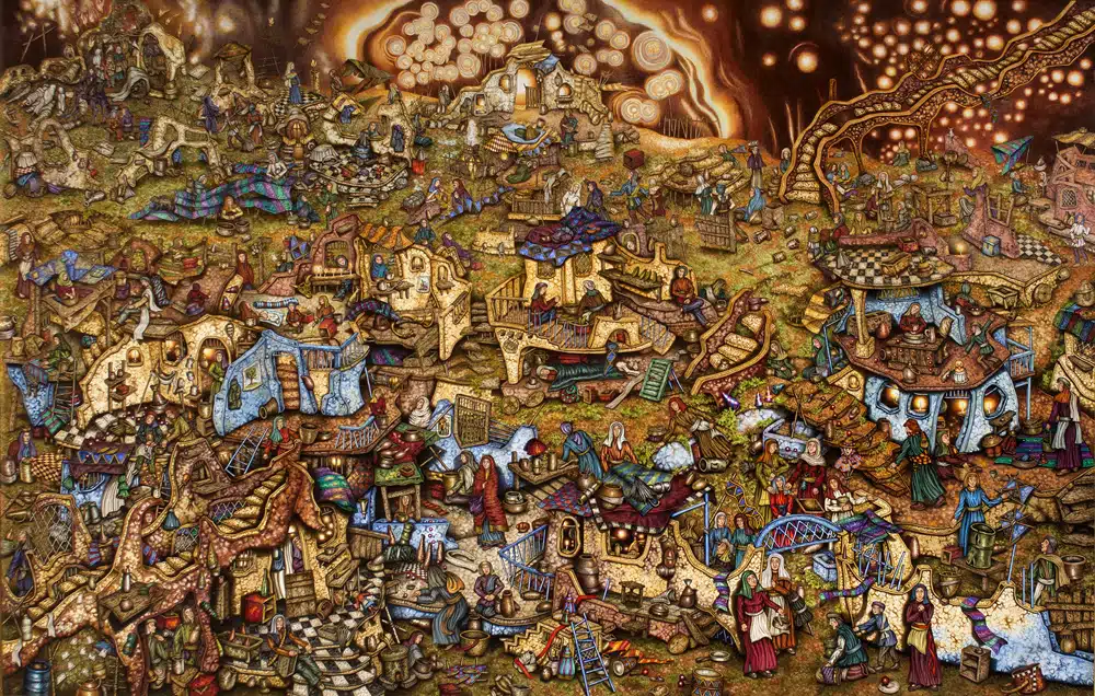 The show features a selection of paintings by the artist over a period of the last decade. Milburn is an autodidactic painter, deeply influenced by Brueghel, Hieronymus Bosch, Caspar David Friedrich and Dali. The meticulous detailing in the paintings is breathtaking, with a large number of figures populating the works, charged with the energy of collective participation in a ritual or a sacred mystery. Attentive to the merging of periods and styles, her paintings carry the memories of several cultures, continents and traditions.