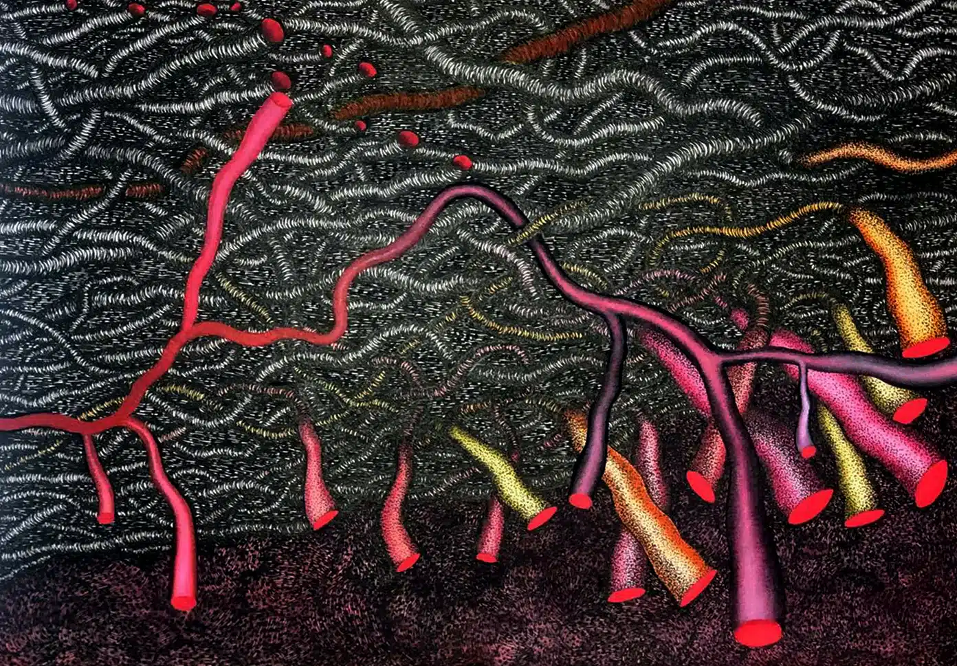 mycelial networks (as Suzanne Simard has termed ‘the wood wide web’), while continuing a grounded study to retell regional stories through an environmental lens. In building material aesthetics premised around ‘soil-life-climate’ within a territory that has witnessed decades of Civil War, Pakkiyarajah has for long observed how conflict induces trauma across living ecologies.