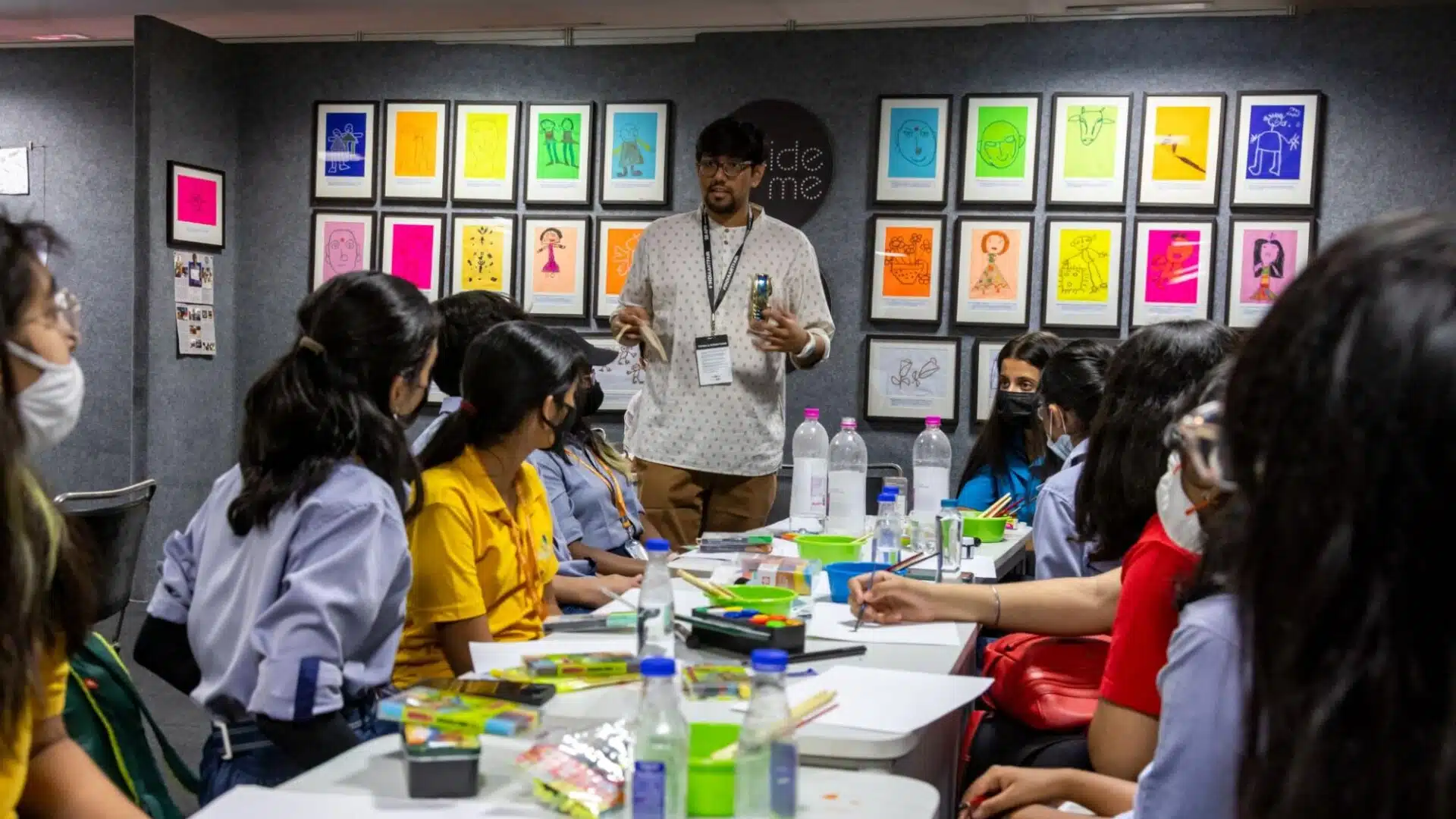 Bridging the gap between cave drawings to Artificial Intelligence. Participants are invited to create mythical animals using dots, lines & block shapes inspired by AI generation images on their phones.