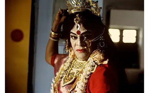 In Performing the Goddess, we witness Bhaduri’s reverent and precise nightly preparation for the role of Sitala and his exhausted stripping away of costume after the performance. This body of work makes a crucial commentary on the performative nature of gender.