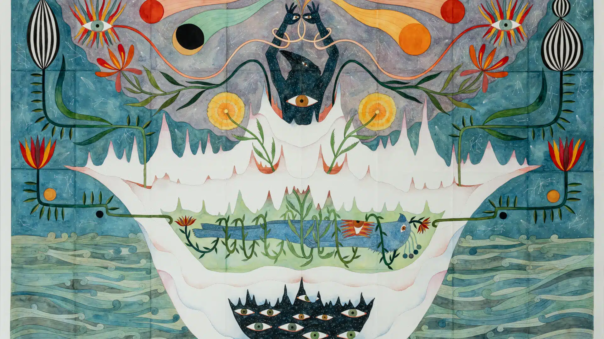 Building on the work from her Terraformation series, shown at the Eleventh Asia Pacific Triennial, the fifteen paintings in this show explore ideas of building a sustainable utopia, away from the Earth. Merchant uses “beings” or characters that are posed as proxies of humans to connect with the concept of abiogenesis—life emerging from non-living matter billions of years ago.