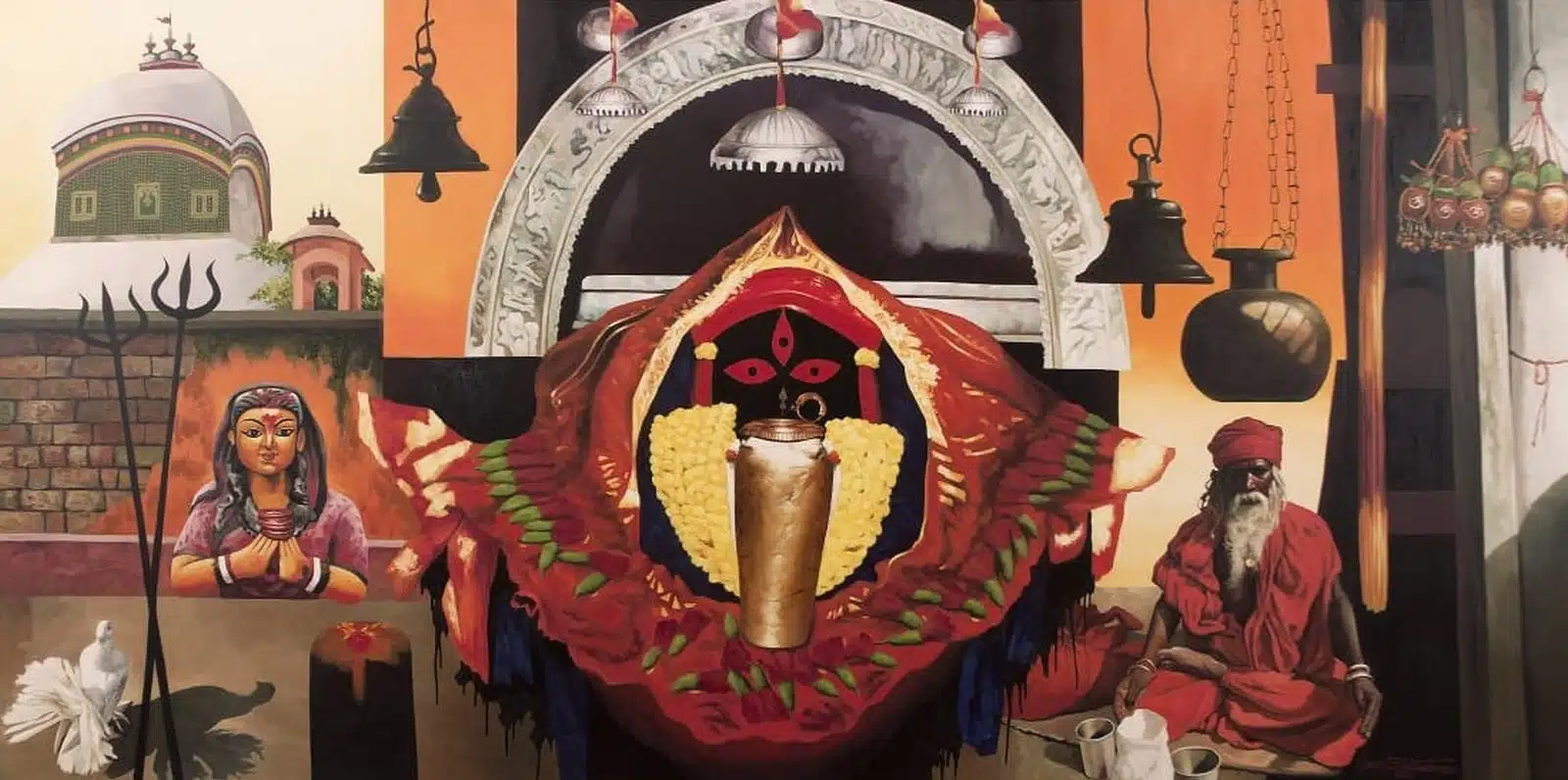A large canvas by Sanjay Bhattacharya who likes to explore vast surfaces, ‘Kalighat’ will be the centrepiece of the show. He attempts to capture the ambience of religious spaces, concentrating on forms and contours rather than any religious theme in particular. Other highlights include an abstract work by Ram Kumar with sweeping strokes of paint that evoke the exultation of natural spaces, jottings of Ganesh Pyne, rich with visual depth in which every single stroke appears charged with muted eloquence, and a pair of drawings by Jogen Chowdhury with his signature technique where each line acquires an organic form pulsating with life.