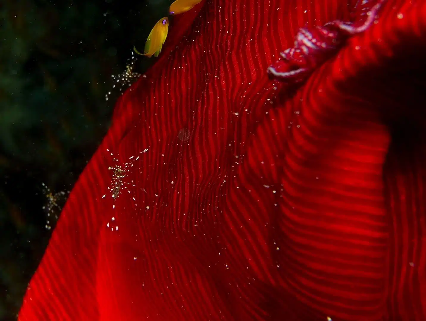 Inspired by a diving holiday to the Maldives and the coral formations she saw there, Vaishali’s garments are made of fine handwoven Chanderi and Maheshwari fabrics , with coral like forms. On a subsequent trip to the Maldives, Alessandro and Vaishali took these very garments, back to their inspirations, 30m deep, and laid it against the corals they had seen. To their amazement, they found that the sea life – fish, anemones, shrimp, even sharks, came to play with these garments. Alessandro took photographs of the garments , corals and sea life , to create a stunning set of these images showing this interplay .