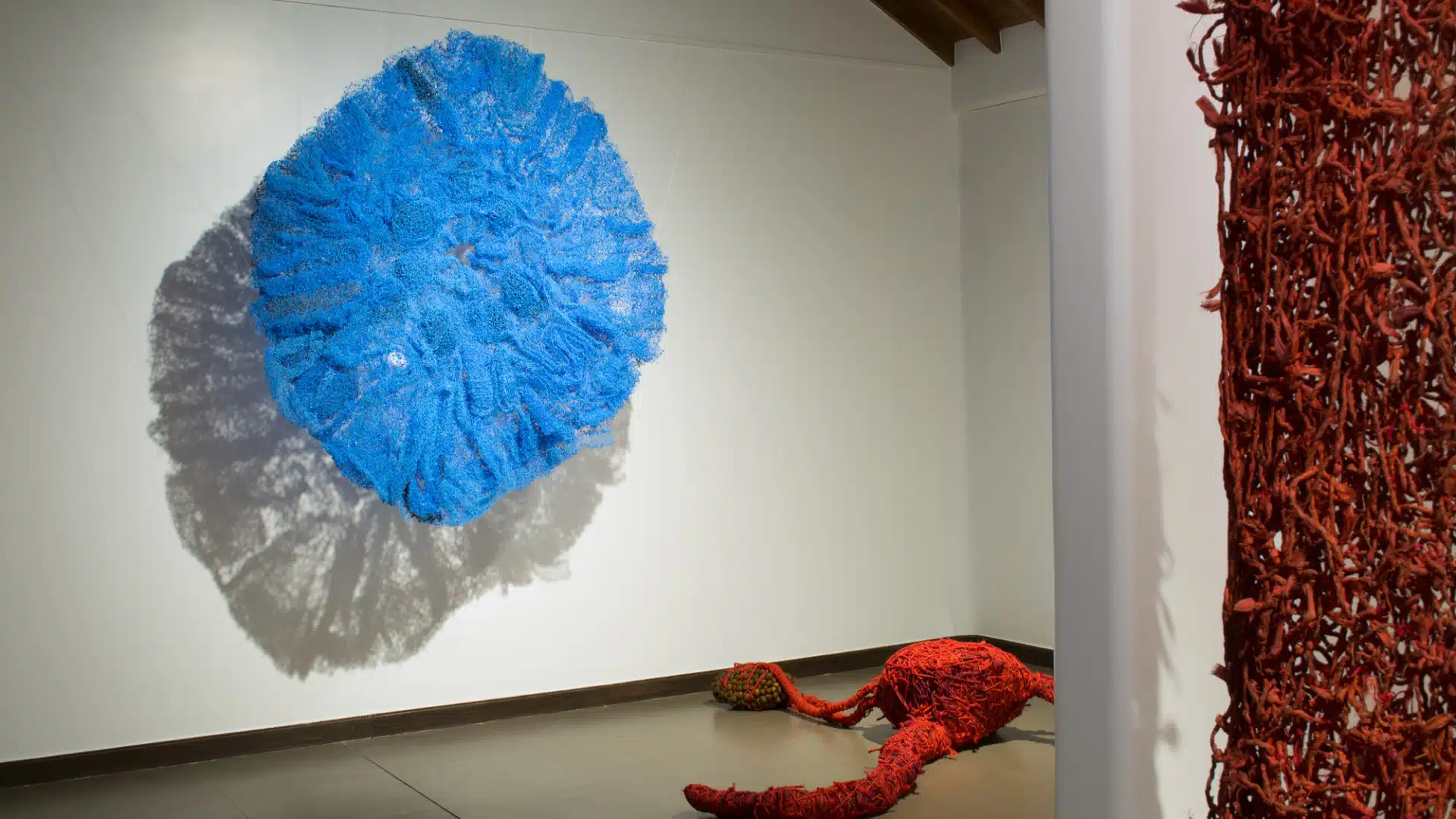 The exhibition presents Dixit’s sculptures are woven, variously, from cloth and plastic price-tags, everyday materials found, made, recycled and upcycled. “These are infinite projects, constructed patiently and repetitively over a period of time and invested with endless labour,” says curator Nancy Adajania. “Dixit blurs the line between the organic and the industrial. Her sculptures are fecund creatures that might startlingly throw out a green shoot if you lavish them with focused attention. Even as they consolidate into archetypal and biomorphic forms that remind us of mandalas, screens, yonis or cocoons, these sculptures are an extension of the artist’s body, its stresses and strains, dreams and disquiets channeled through moments of stillness, growth, and even overgrowth.”