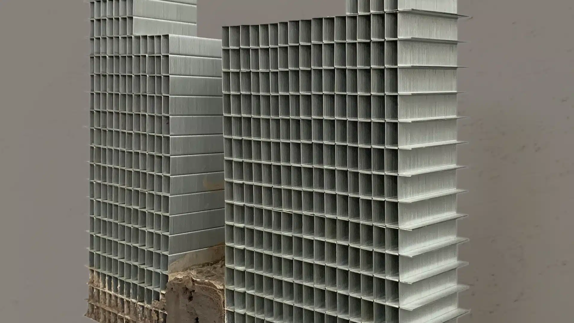 Spanning the breadth of her practice, Silently Continuing… is an endeavor by Iranna to capture the sensations of a city as experienced by individuals, not as designed by architects and planners. The artist’s new body of work is extremely sensitive, as it attempts to bring forth what an explosion of urbanization—and its standardization that we see today in the name of modernization and development—would mean for an individual in real terms. Through drawings on acrylic sheets, lens-based media (including video and photography), and sculpture using glass, concrete and staple pins, the works in this exhibition attempt to trace the effects of architecture on emotions and psyche while simultaneously finding traces of our emotional and psychological lives in the structures and patterns of architecture.