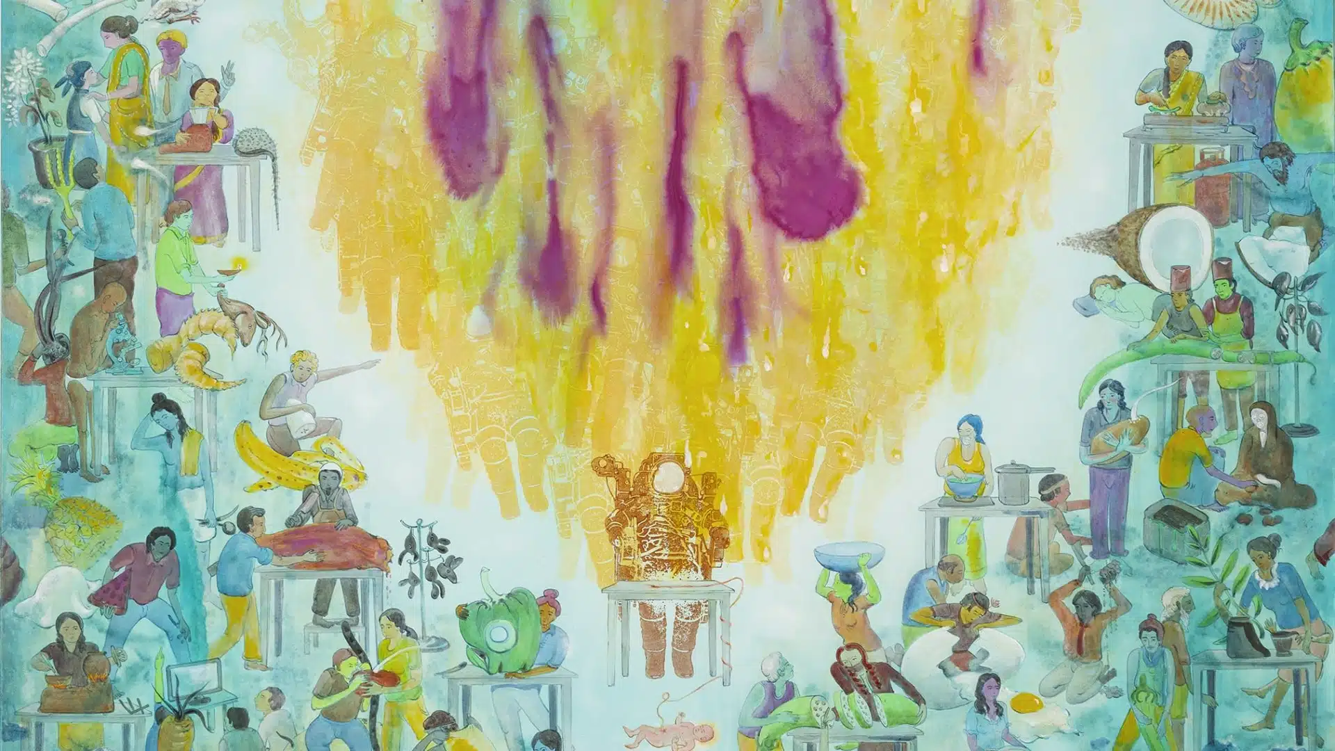 Titled after a personal anecdote involving a slip-of-the-tongue by his mother’s old friend, Stomach Studio is a solo exhibition of recent works by artist N.S. Harsha, featuring eclectic and hermeneutically intriguing compositions drawn from Harsha’s own daily life. Marking humble everyday moments as a series of consequential events, Harsha launches a deeply conscious inquisition into the performance of life with an urgency to arrive at conclusions of meaning that for him fuel the being within existence.